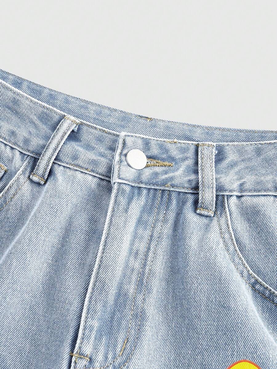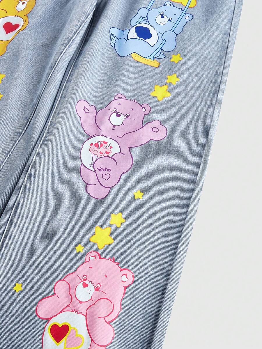 ROMWE X Care Bears Women's Slant Pocket Cartoon Bear Print Jeans