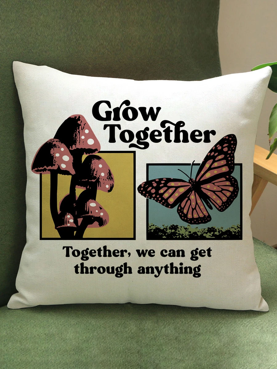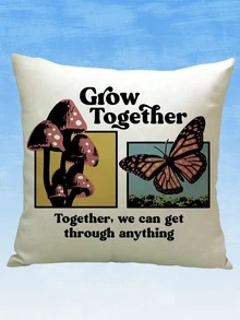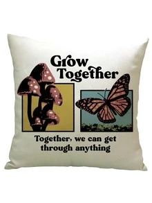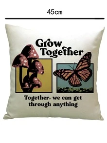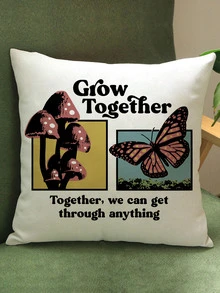 Comensestudio Mushroom & Slogan Graphic Cushion Cover Without Filler