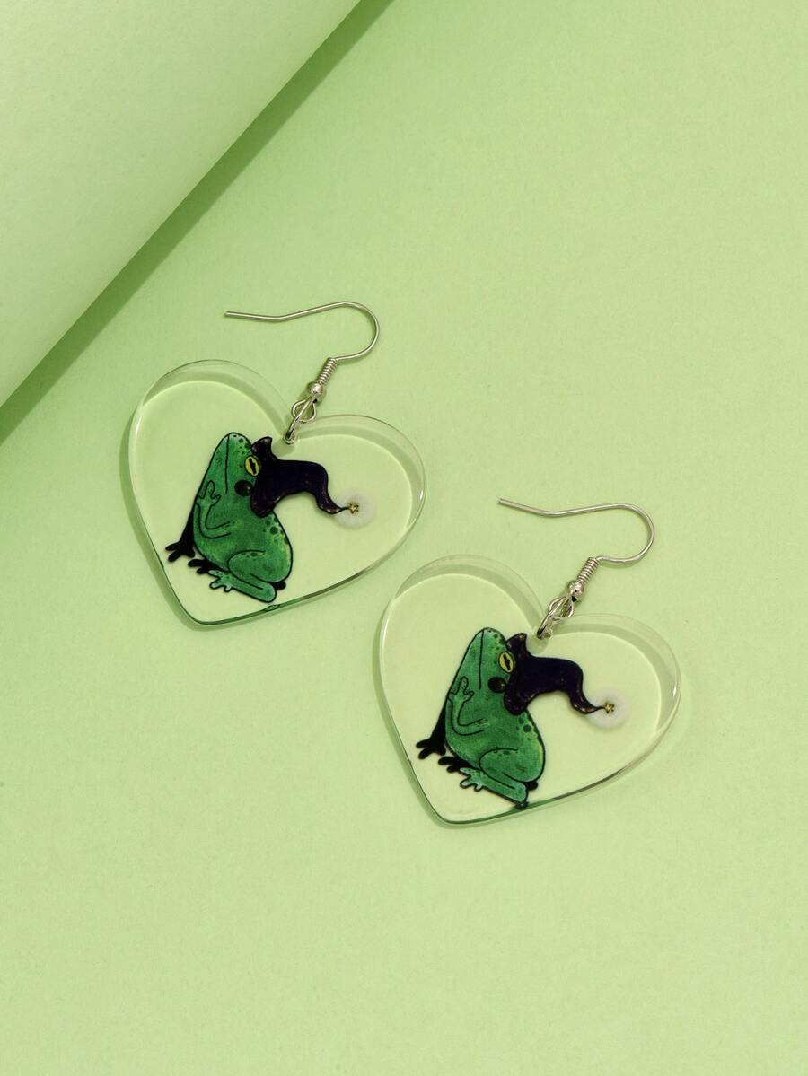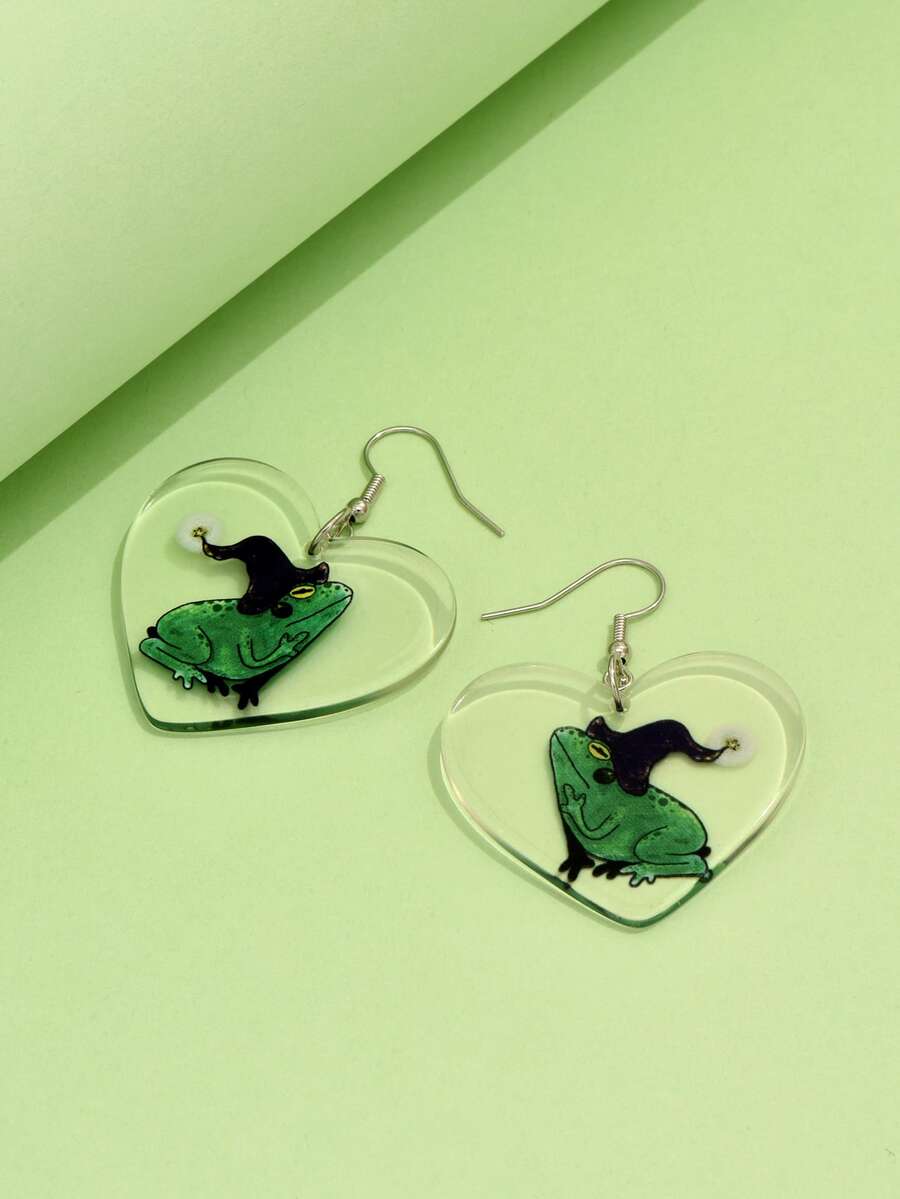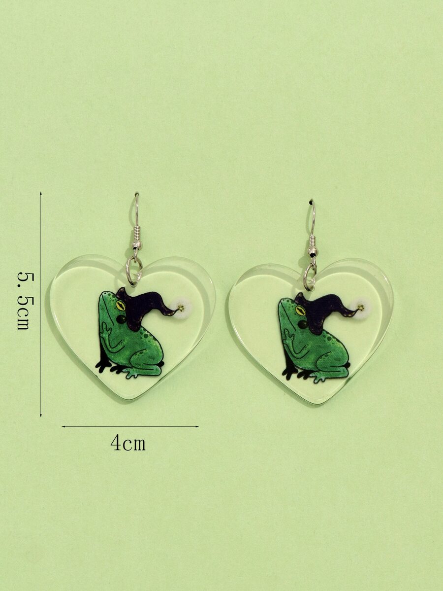 H3IDI Frog Pattern Heart Decor Drop Earrings