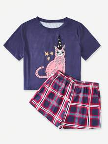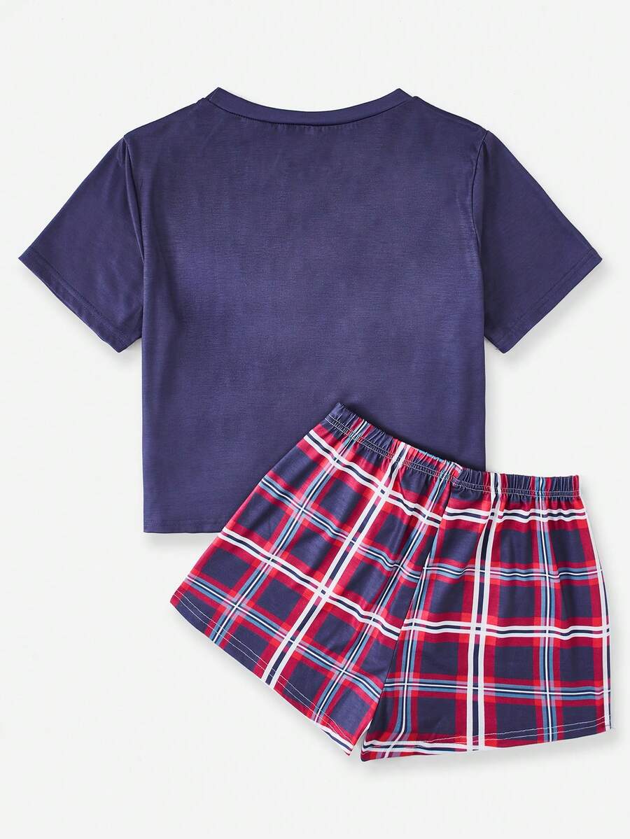 Remiandoliver Cartoon Graphic Tee & Plaid Shorts PJ Set