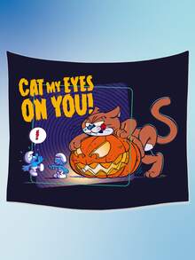 ROMWE X The Smurfs Halloween Slogan & Cartoon Animal Print Tapestry
