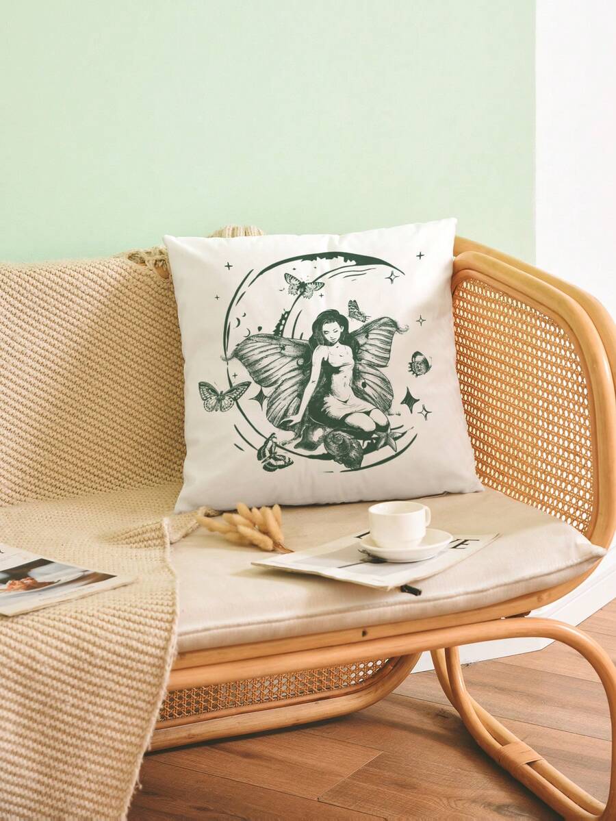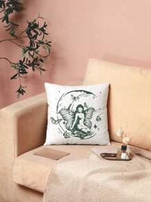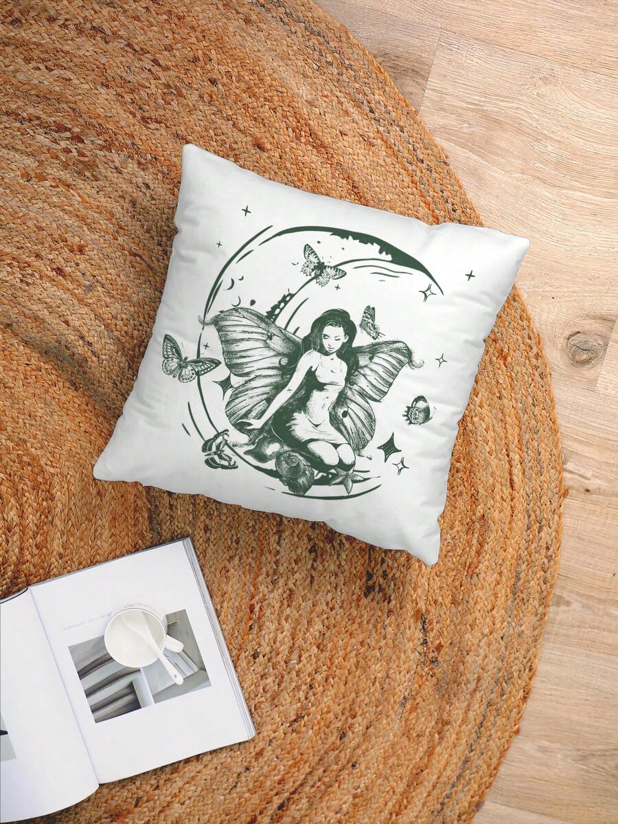 Fairycore Mermaid Moon & Figure Graphic Cushion Cover Without Filler