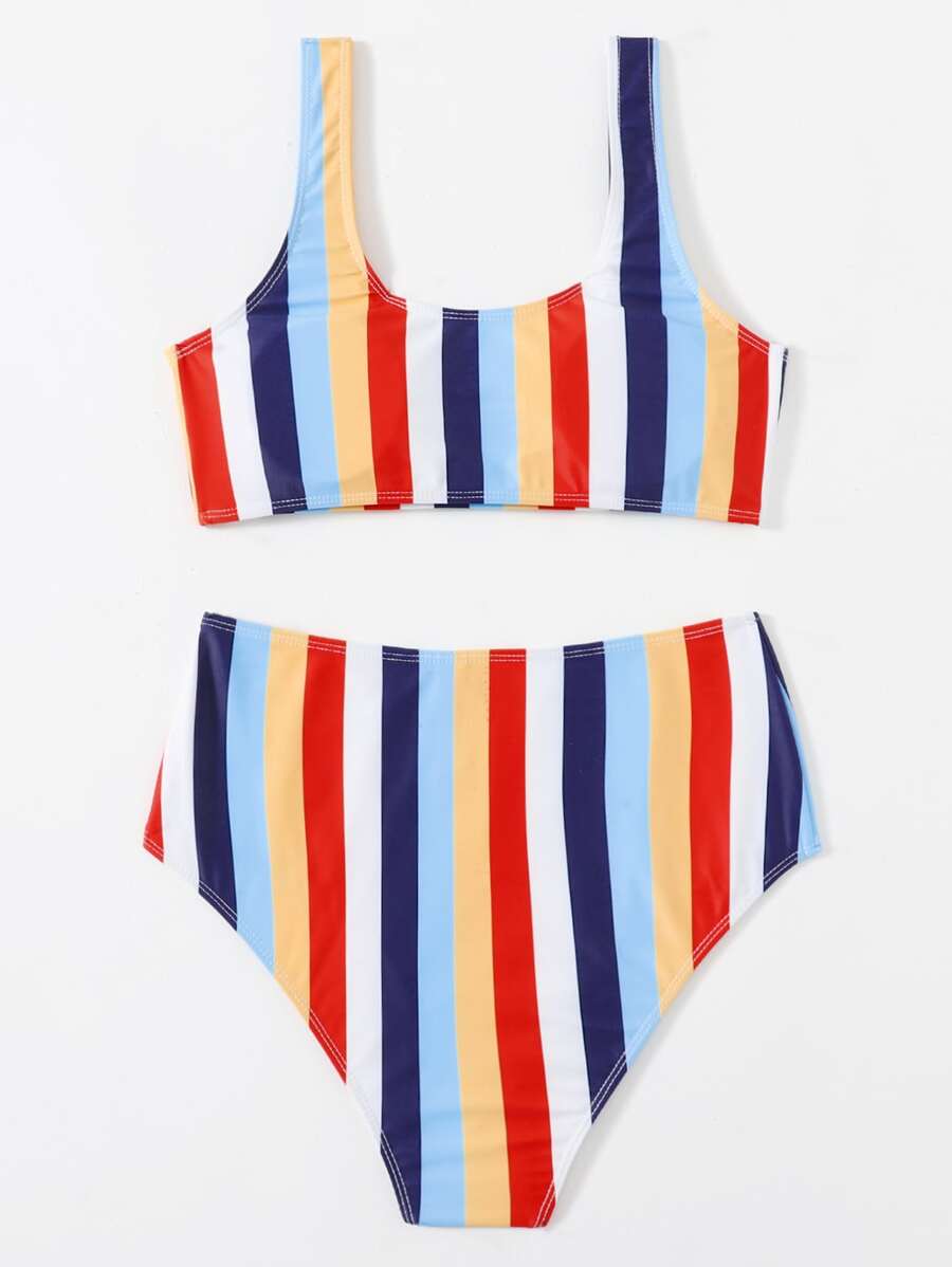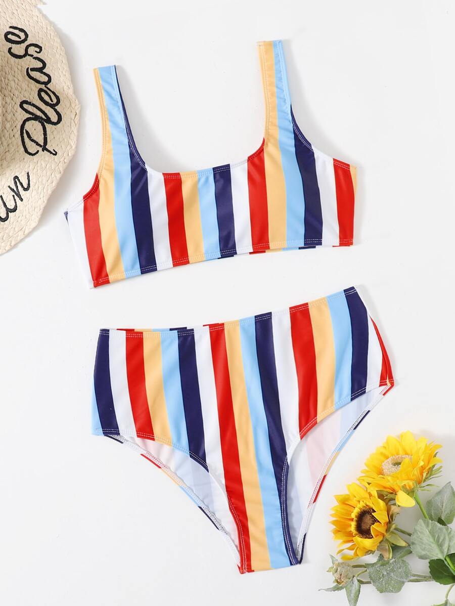 Rainbow Stripe Bikini For Summer Beach Vacation