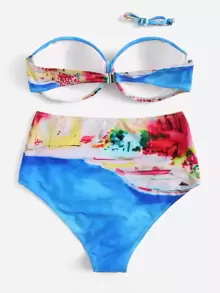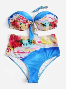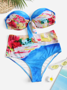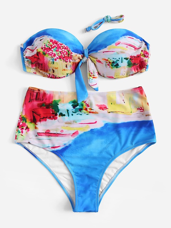 Random Tie Dye Bandeau With High Waisted Bikini