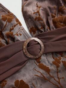 Hippie Retro Tie-Dye Floral Flocked Sexy Deep V Backless Halter Top For Women
