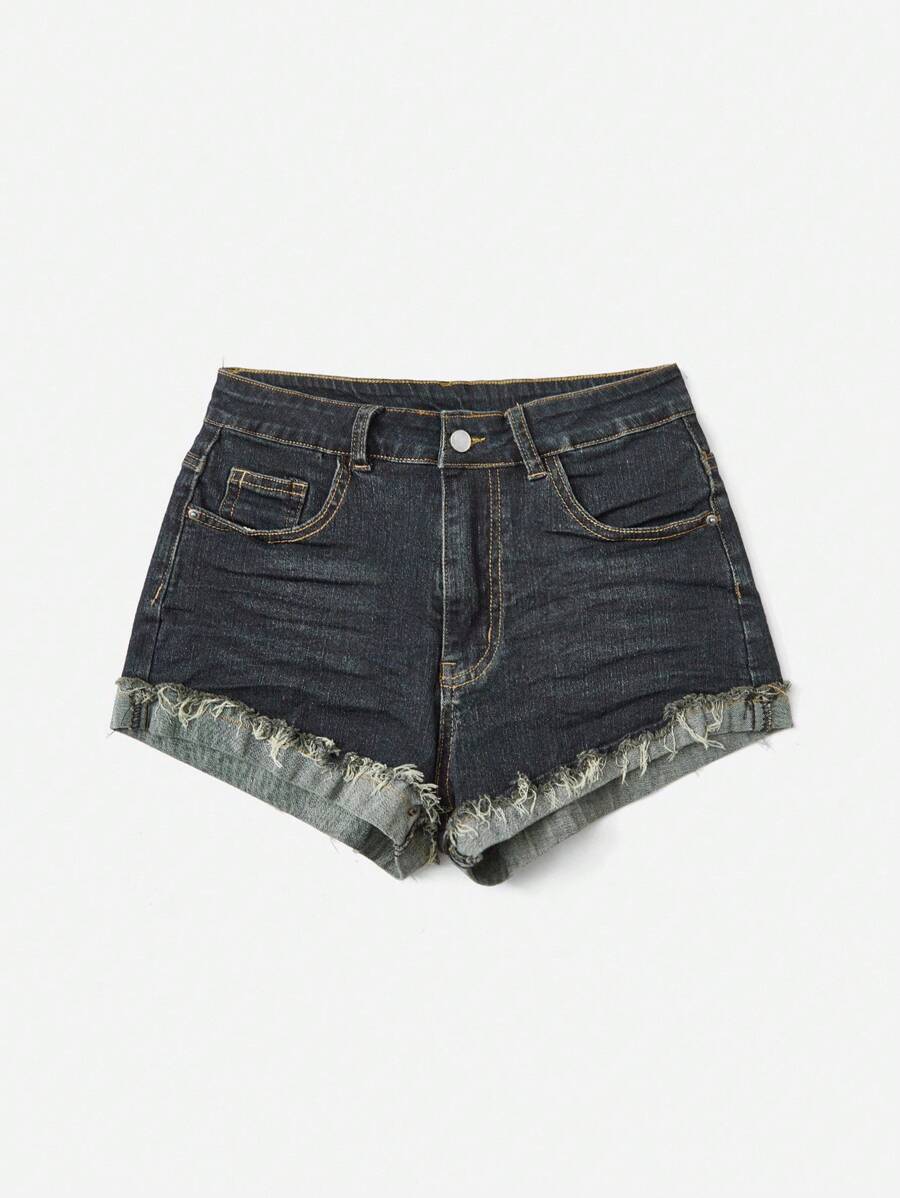 Grunge Punk Retro Washed Low Waist Denim Shorts With High Elasticity, Elegant & Versatile, Plus Size