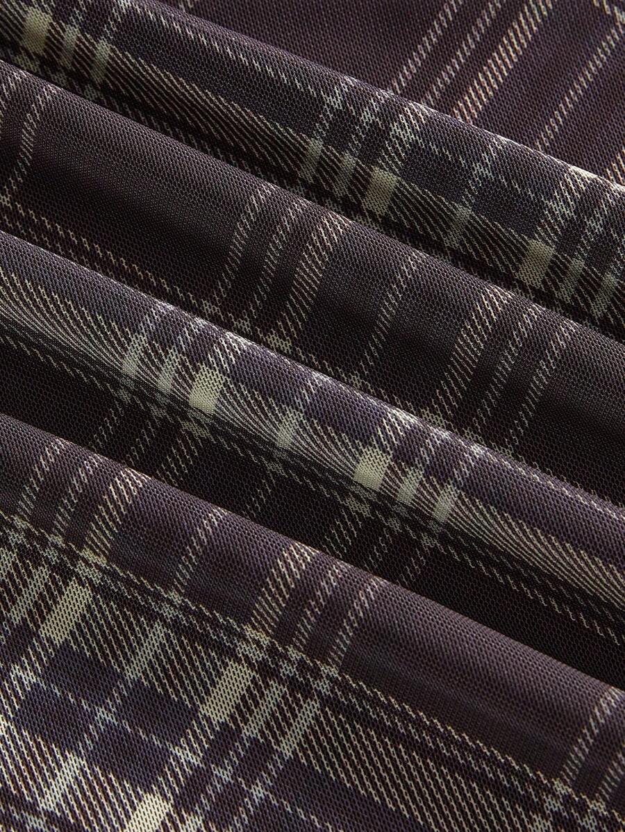 Retro Y2K Plaid Scarf Accessory & Plaid Fish Tail Maxi Dress