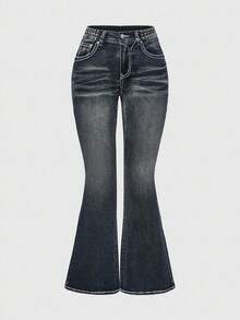 Grunge Punk Retro Y2K Star Rhinestone Decor Washed Super Low Waist Flare Jeans For Women, Versatile For Multiple Occasions