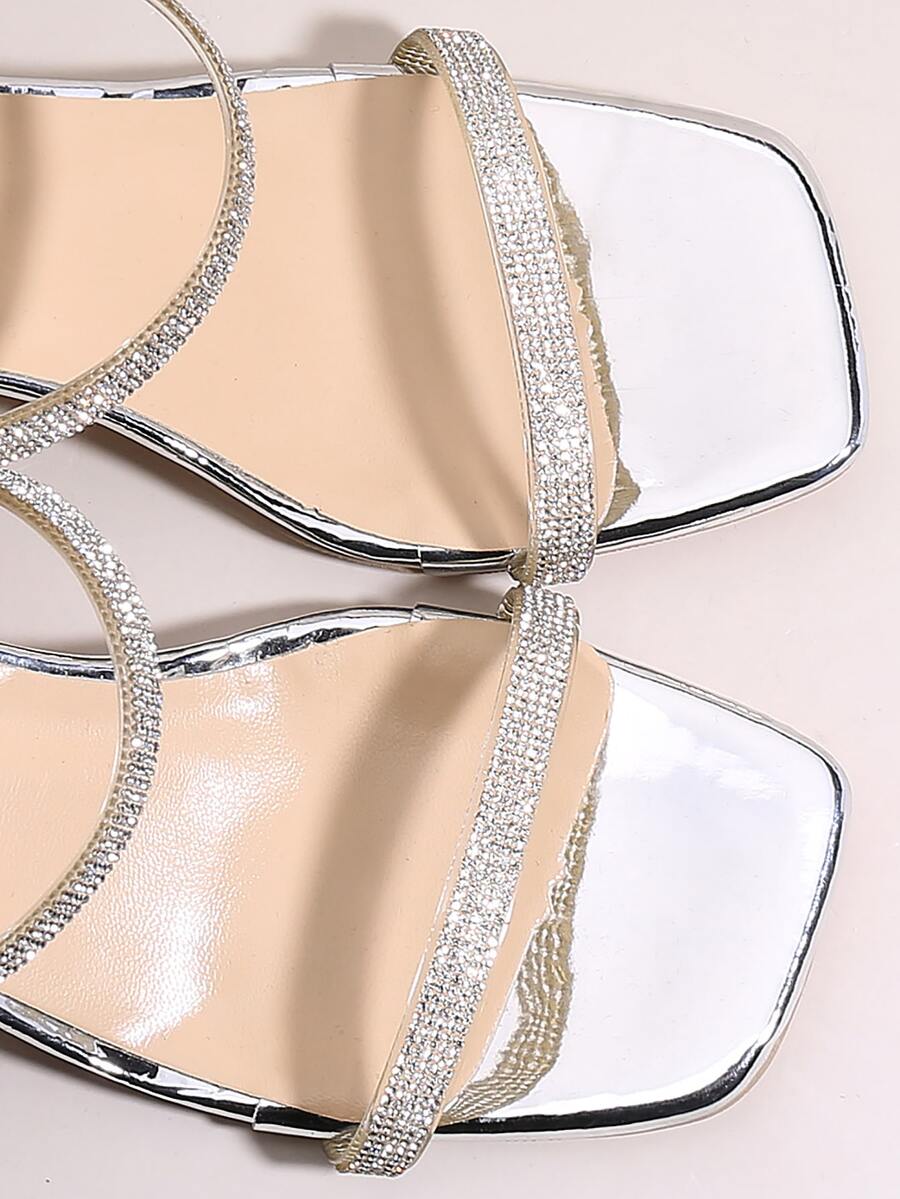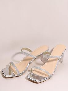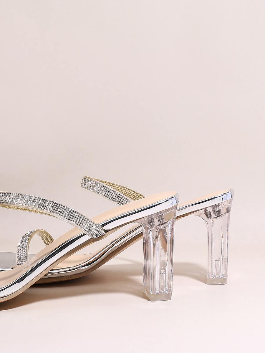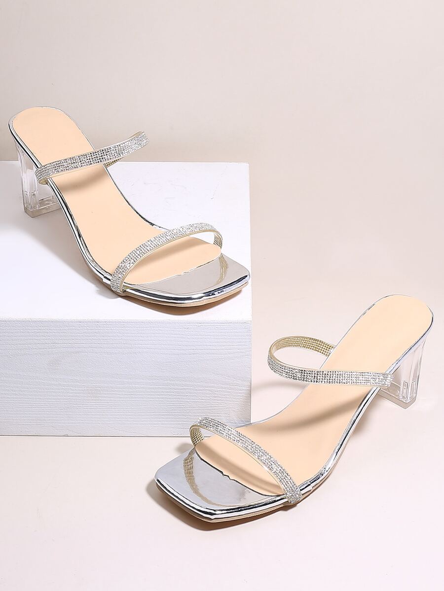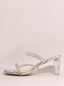 Rhinestone Decor Clear Heeled Mule Sandals