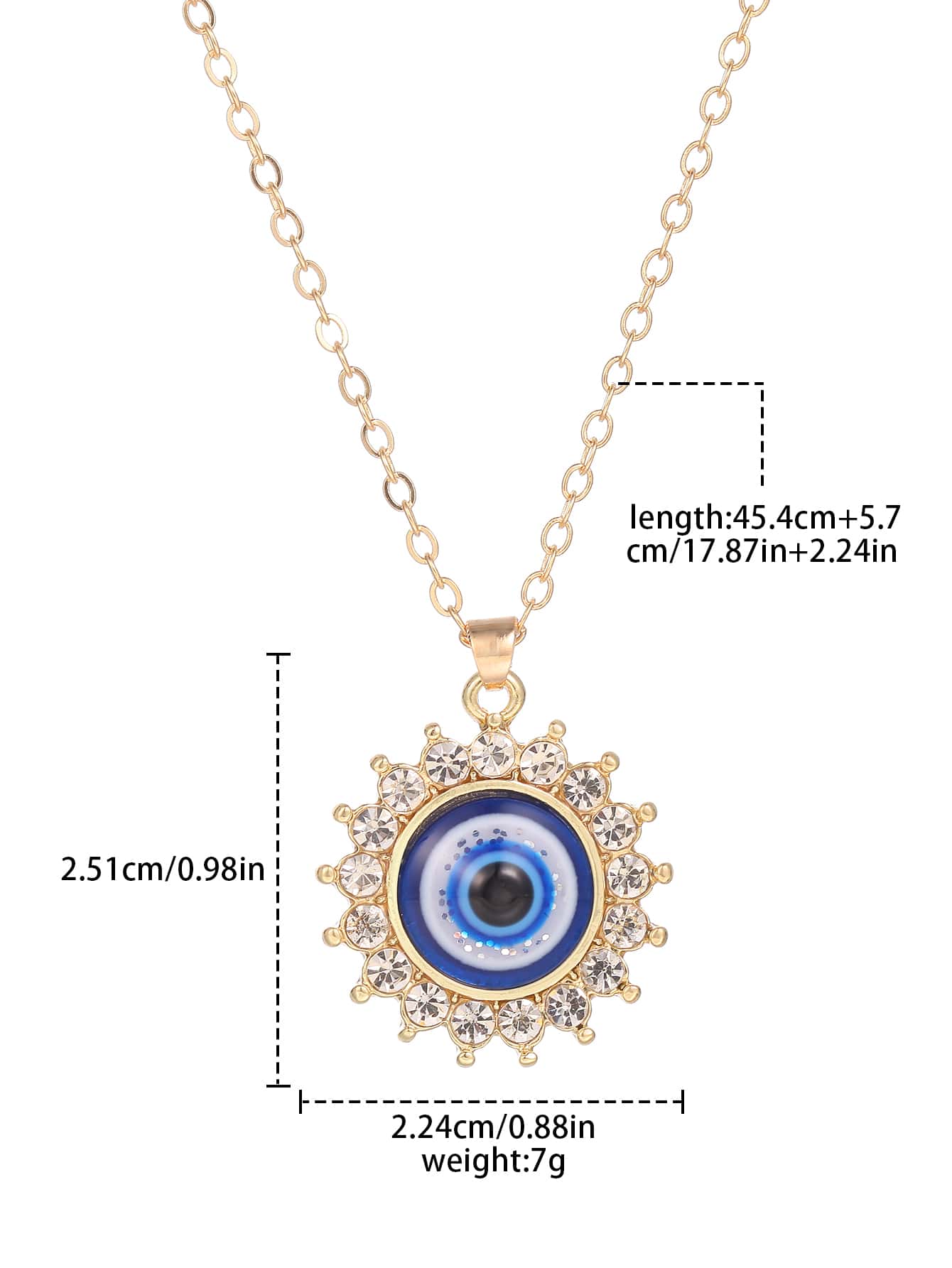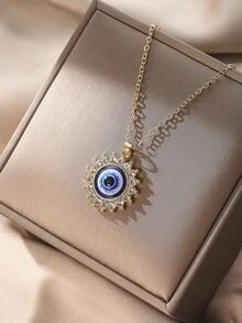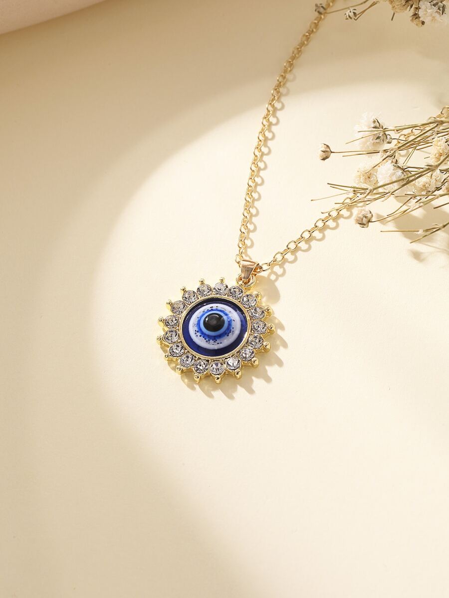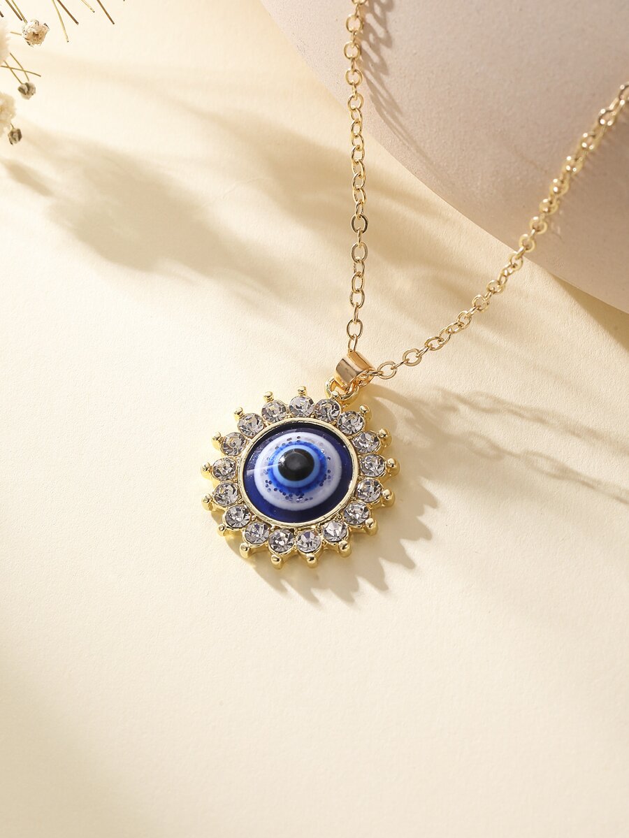 Rhinestone Decor Evil Eye Pendant Necklace