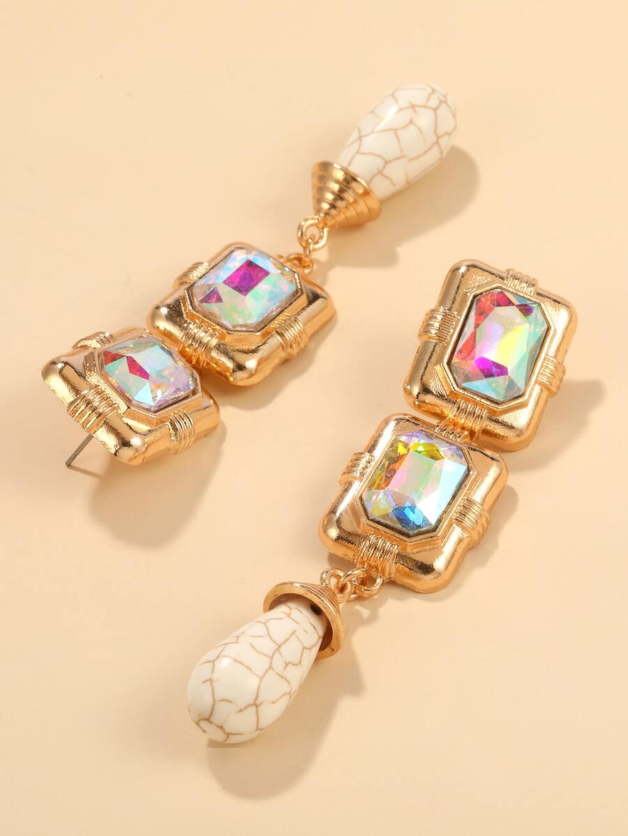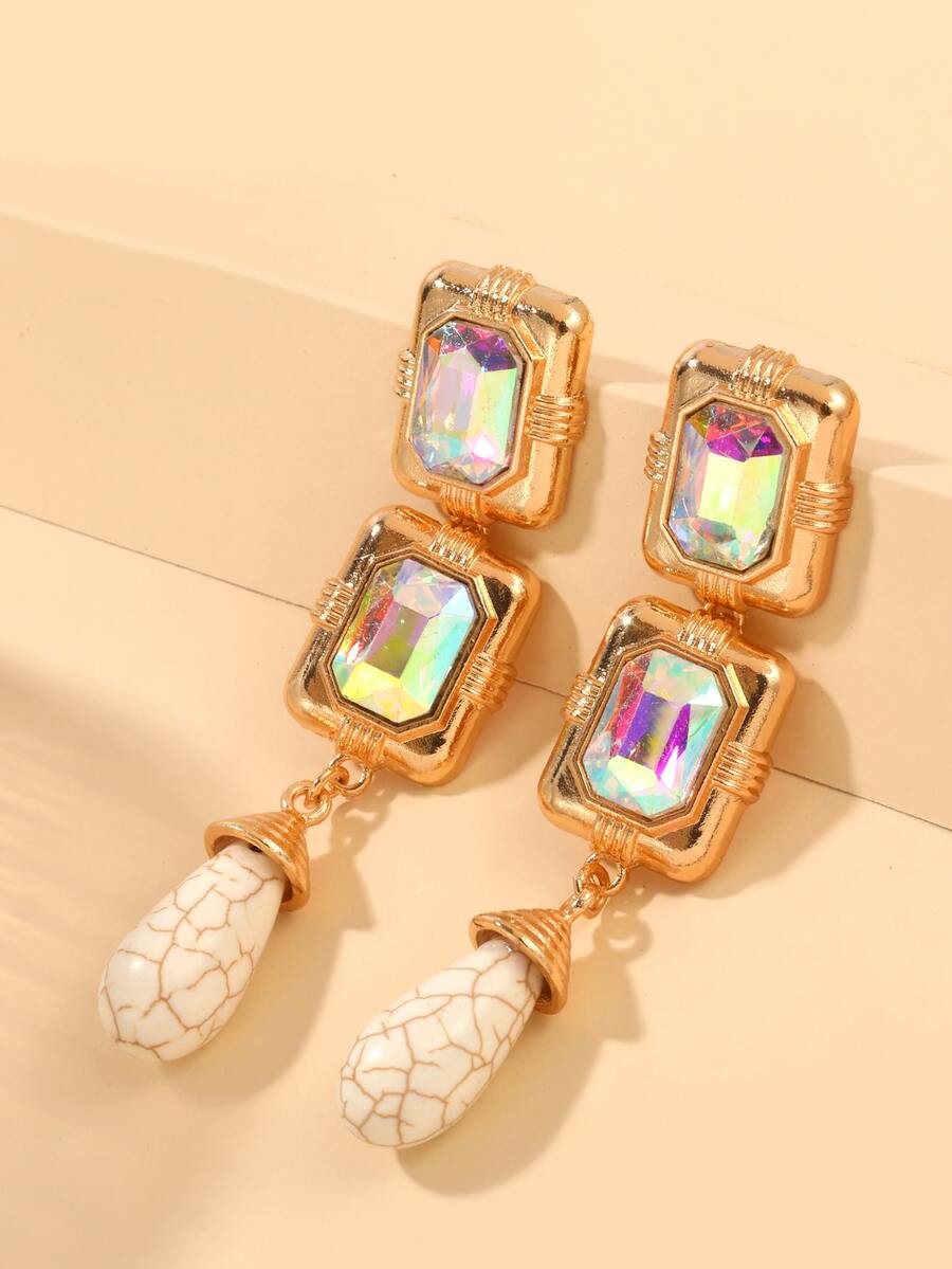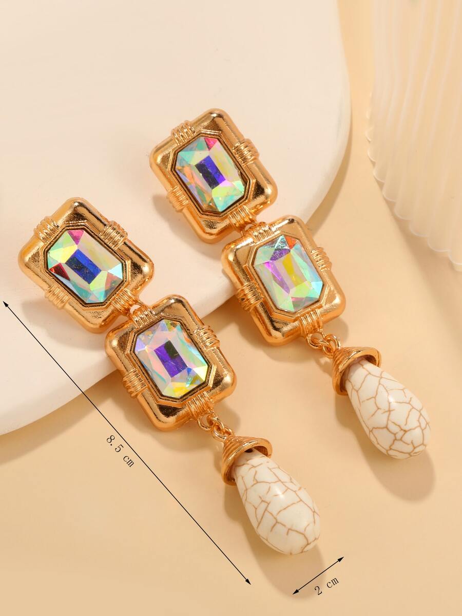 Rhinestone Decor Geometric Drop Earrings