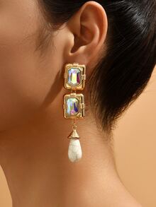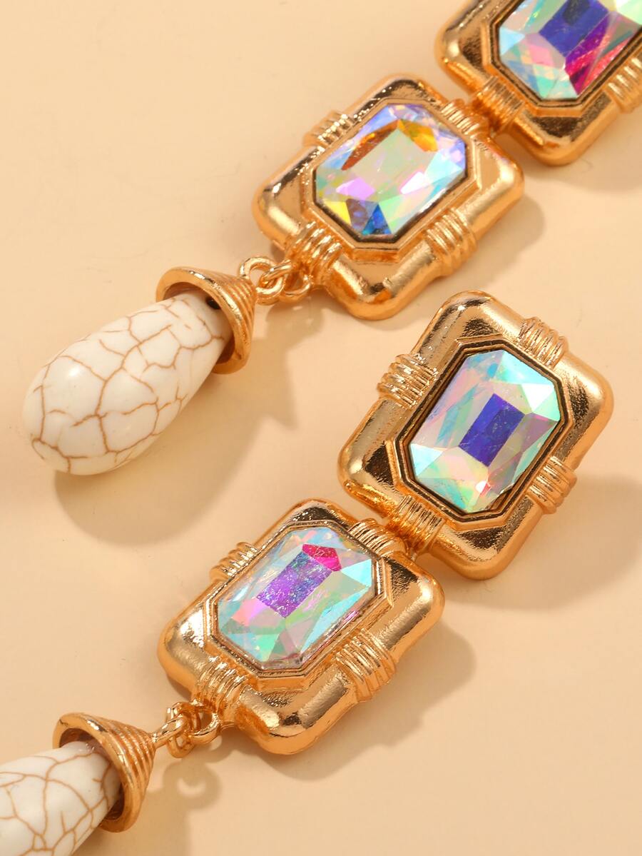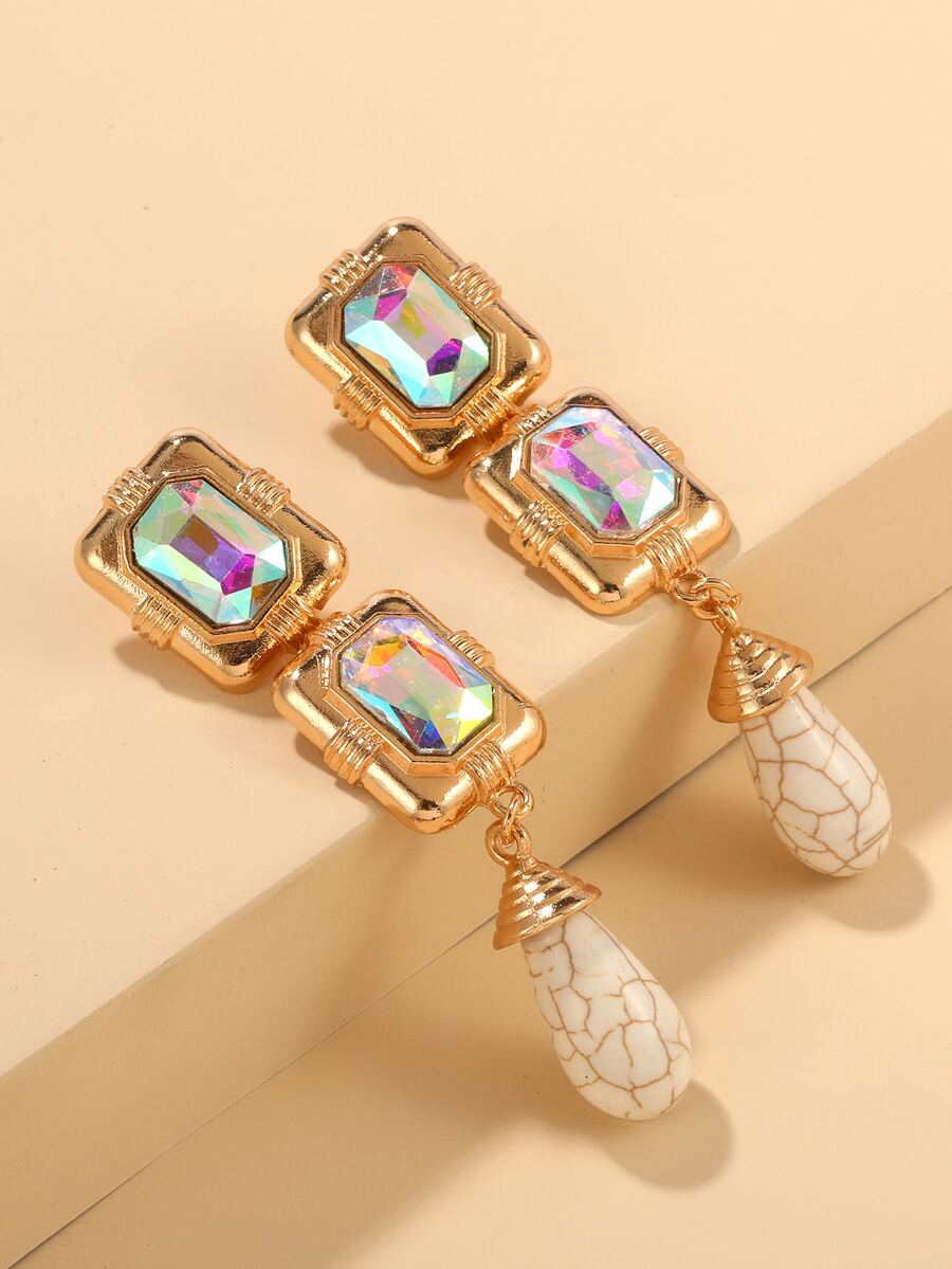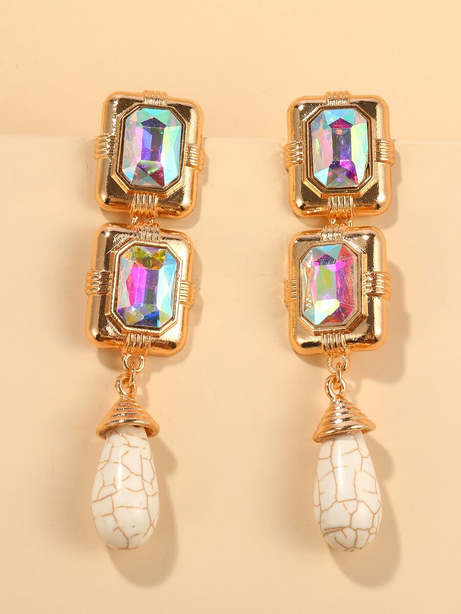 Rhinestone Decor Geometric Drop Earrings
