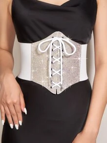 Rhinestone Decor Grommet Lace Up Front Corset Belt