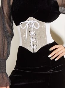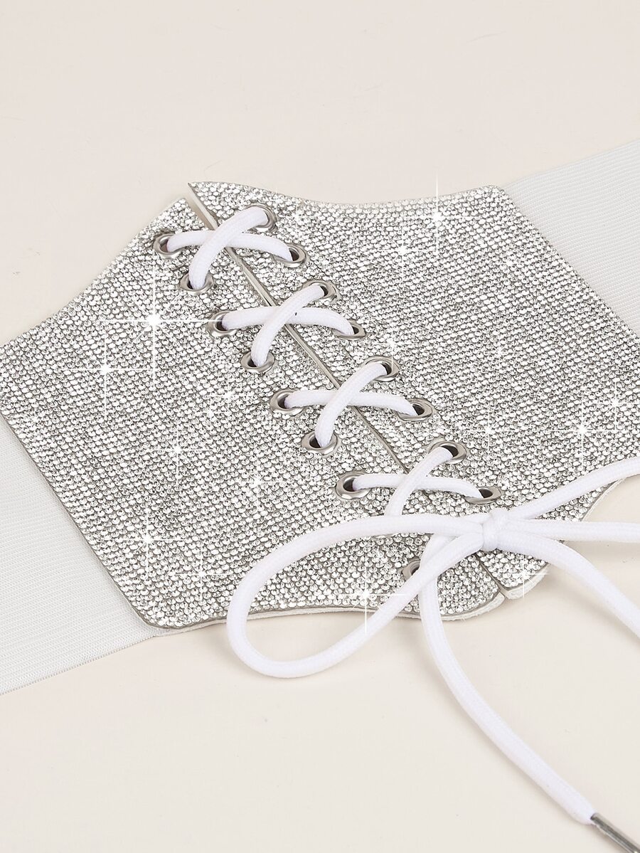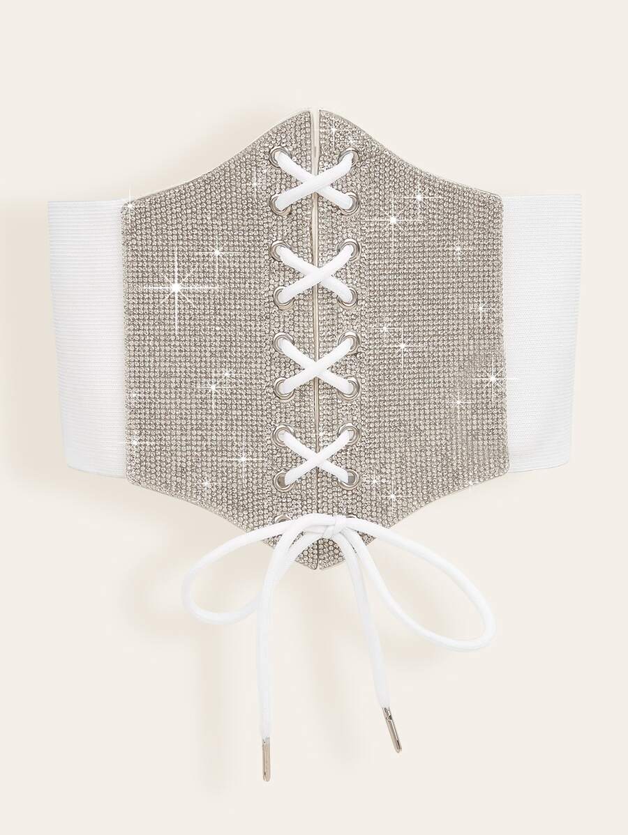 Rhinestone Decor Lace Up Front Corset Belt