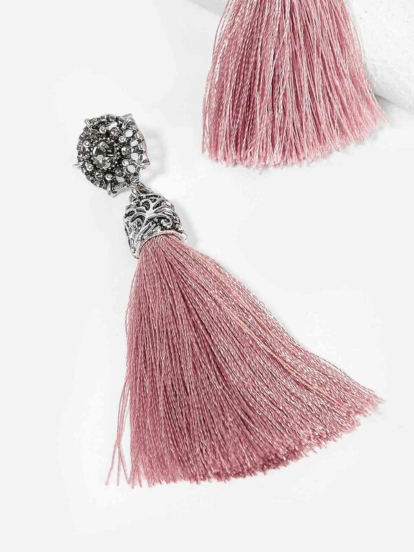 Rhinestone Detail Tassel Drop Earrings 1pair
