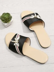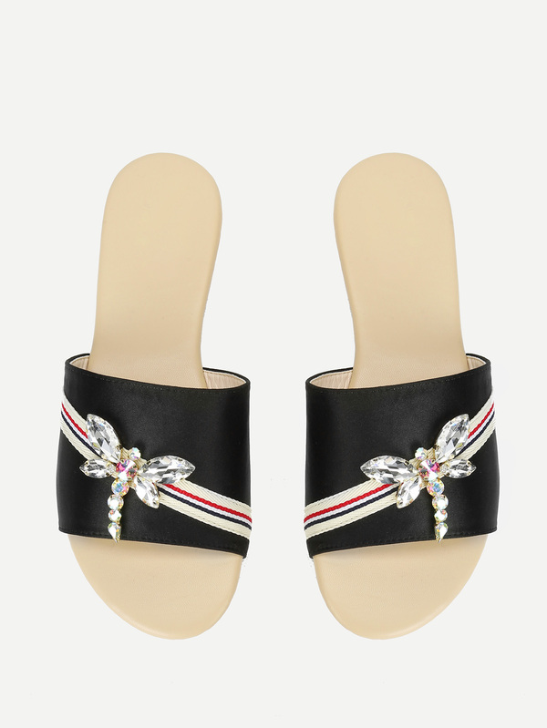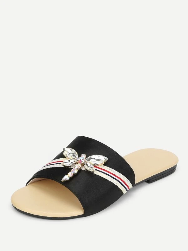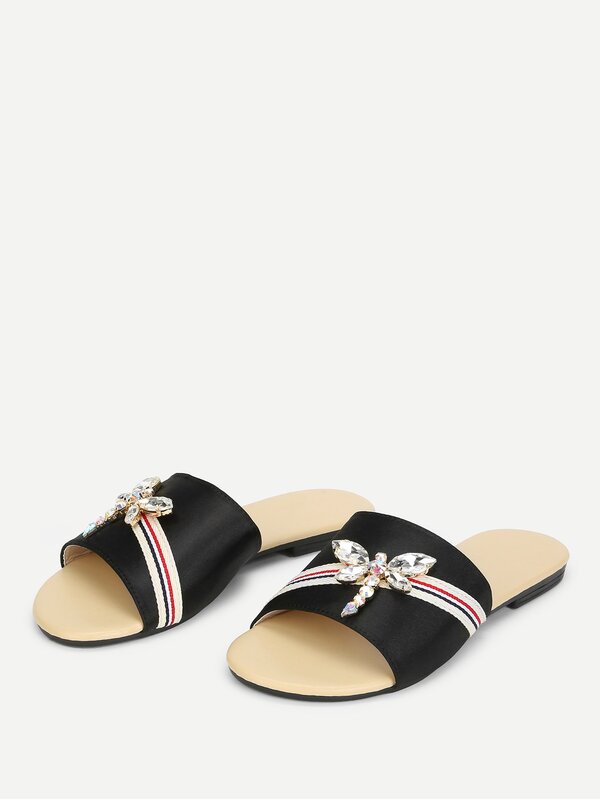 Rhinestone Dragonfly Satin Slippers