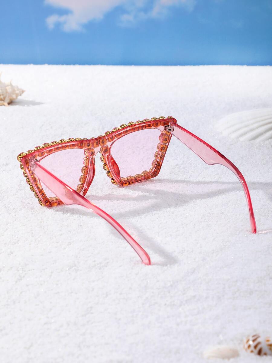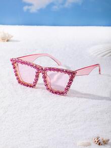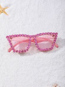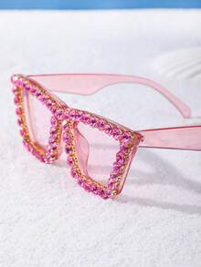 Rhinestone Frame Tinted Lens Fashion Glasses
