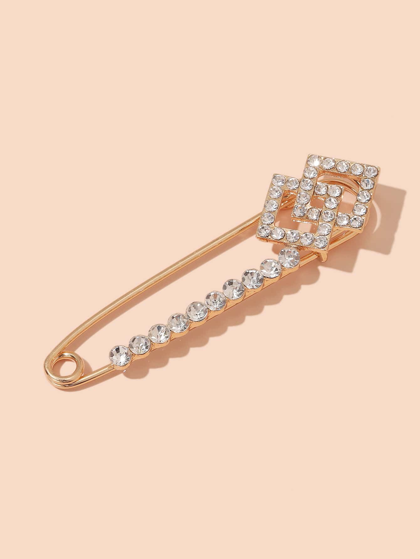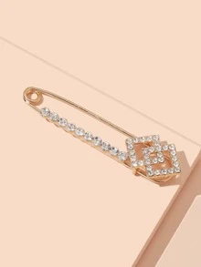 Rhinestone Safety Pin Decor Brooch