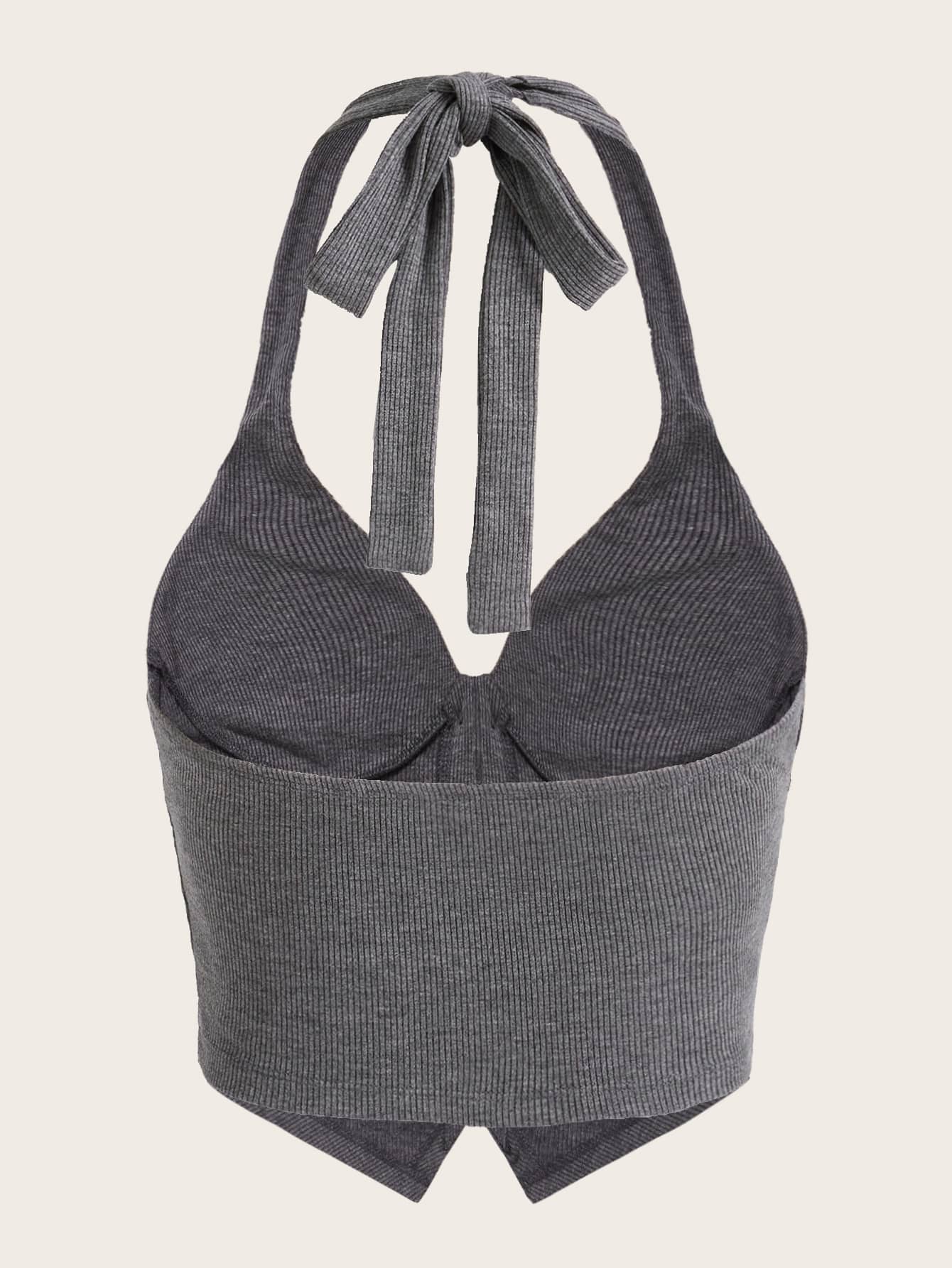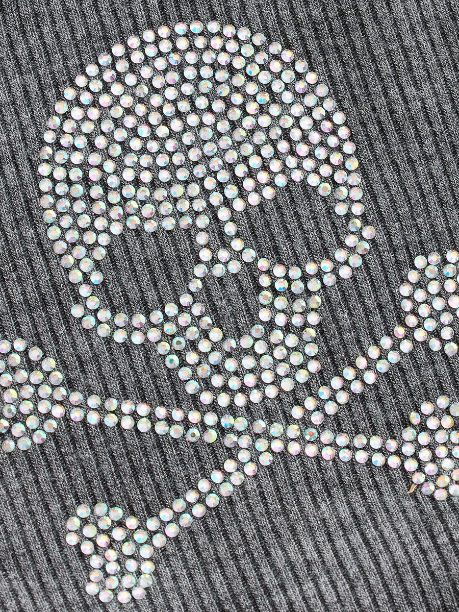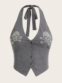Rhinestone Skull Pattern Backless Asymmetrical Hem Halter Top