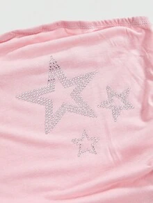 Grunge Punk Rhinestone Star Decor Ruched Body-Con Camisole Top For Women