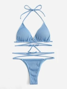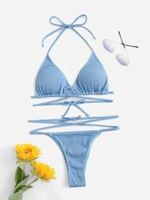 Ribbed Criss Cross Triangle Bikini