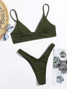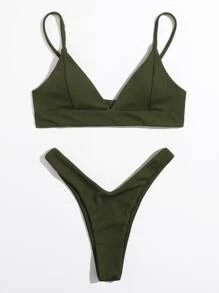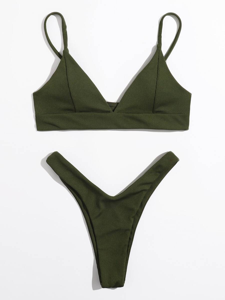 Ribbed High Leg Bikini Set For Summer Beach Vocation