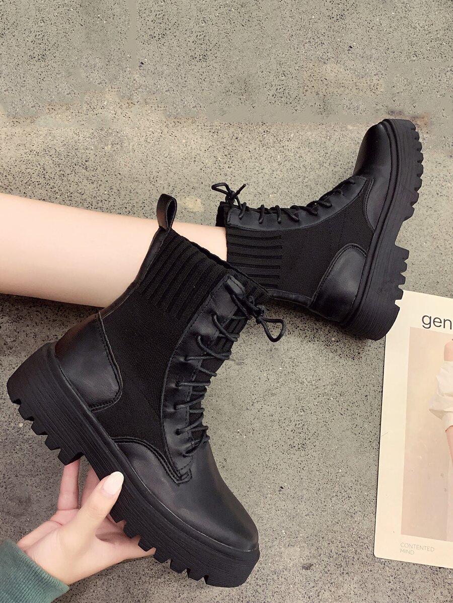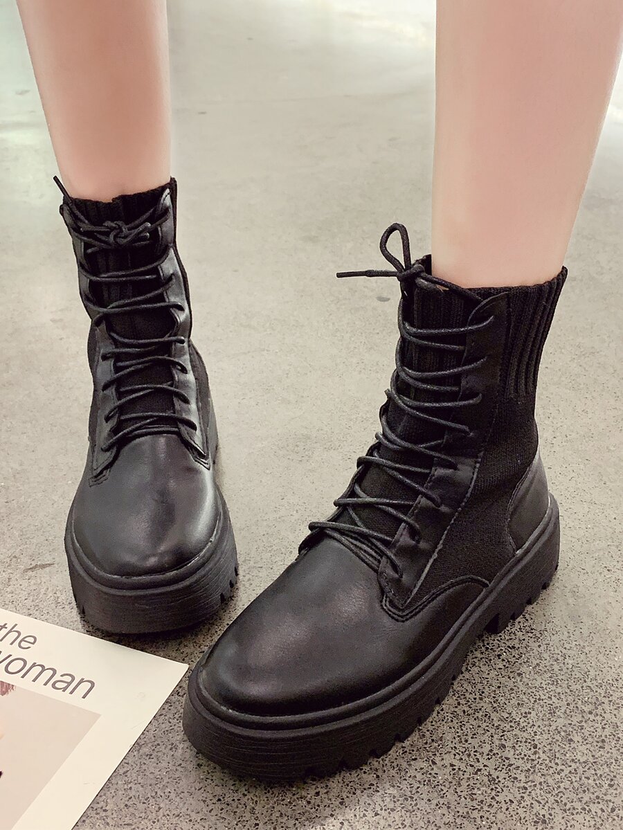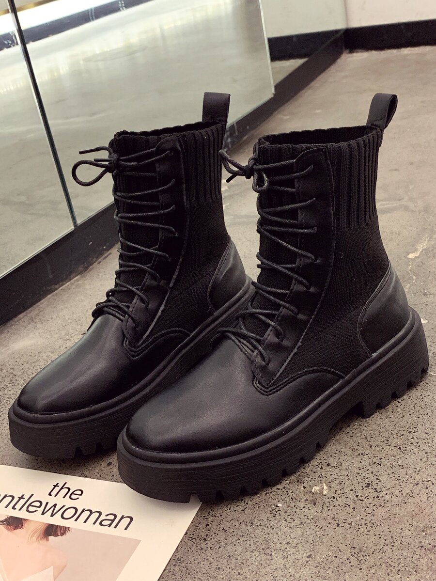 Ribbed Panel Combat Boots