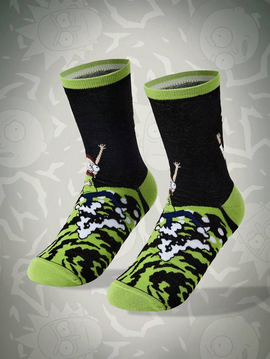 Rick and Morty | ROMWE Cute Cartoon Figure Pattern Color Block Comfortable And Soft Crew Socks