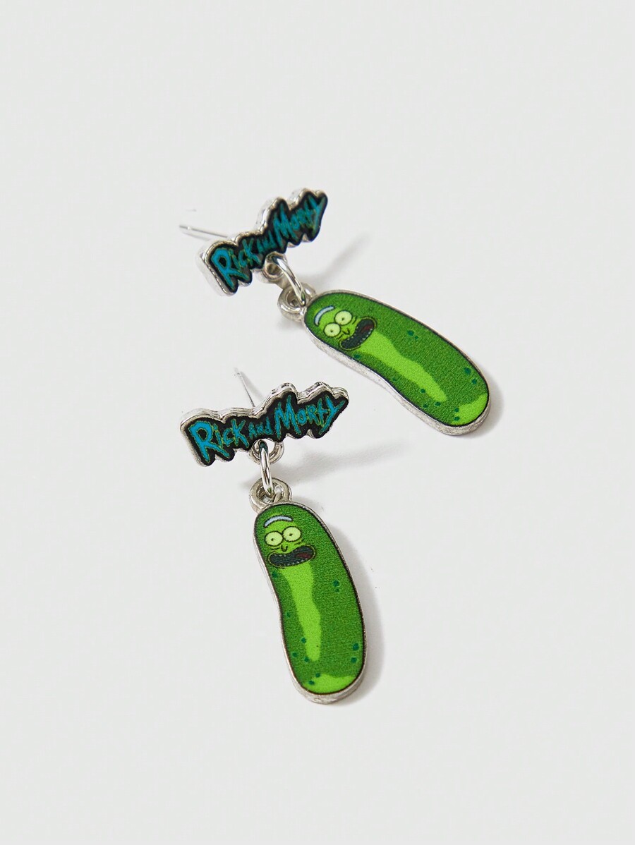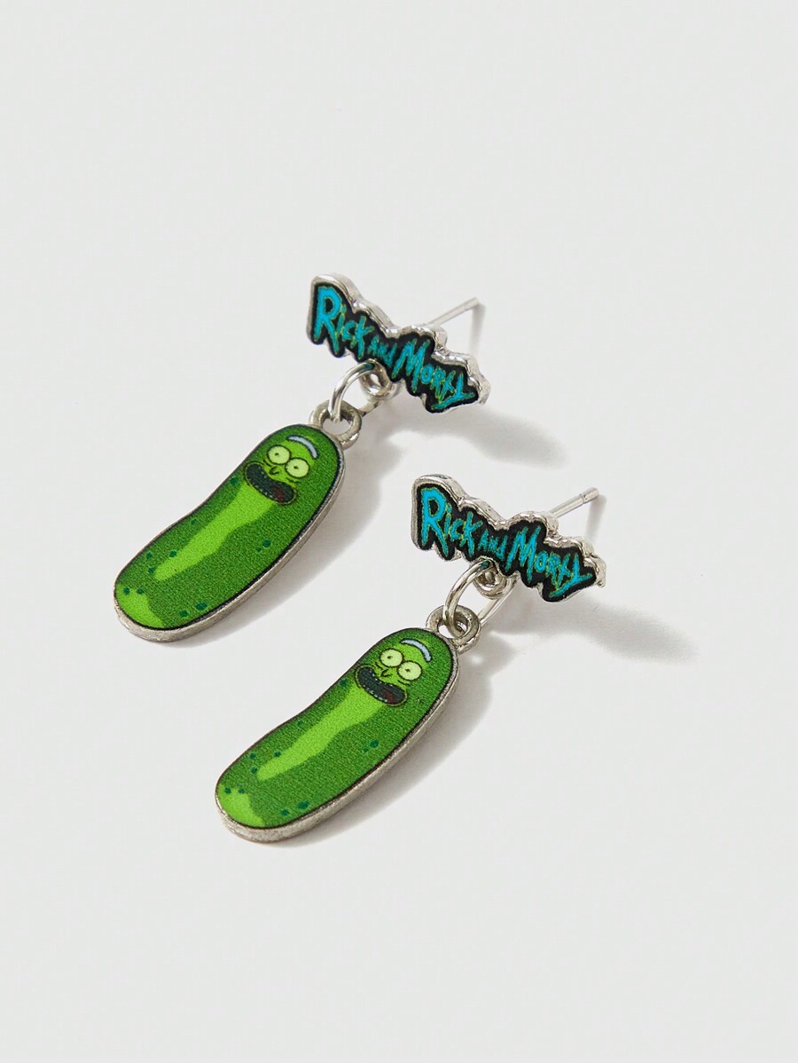 Rick and Morty | ROMWE Fashion Cartoon Cucumber Expression & Letter Print Dangle Earrings