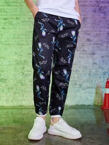 Rick and Morty | ROMWE Guys Figure Print Drawstring Pants