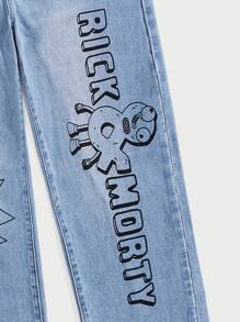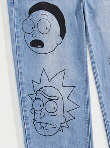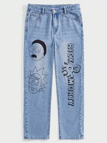 Rick and Morty | ROMWE Guys Letter Cartoon Print Straight Leg Jeans