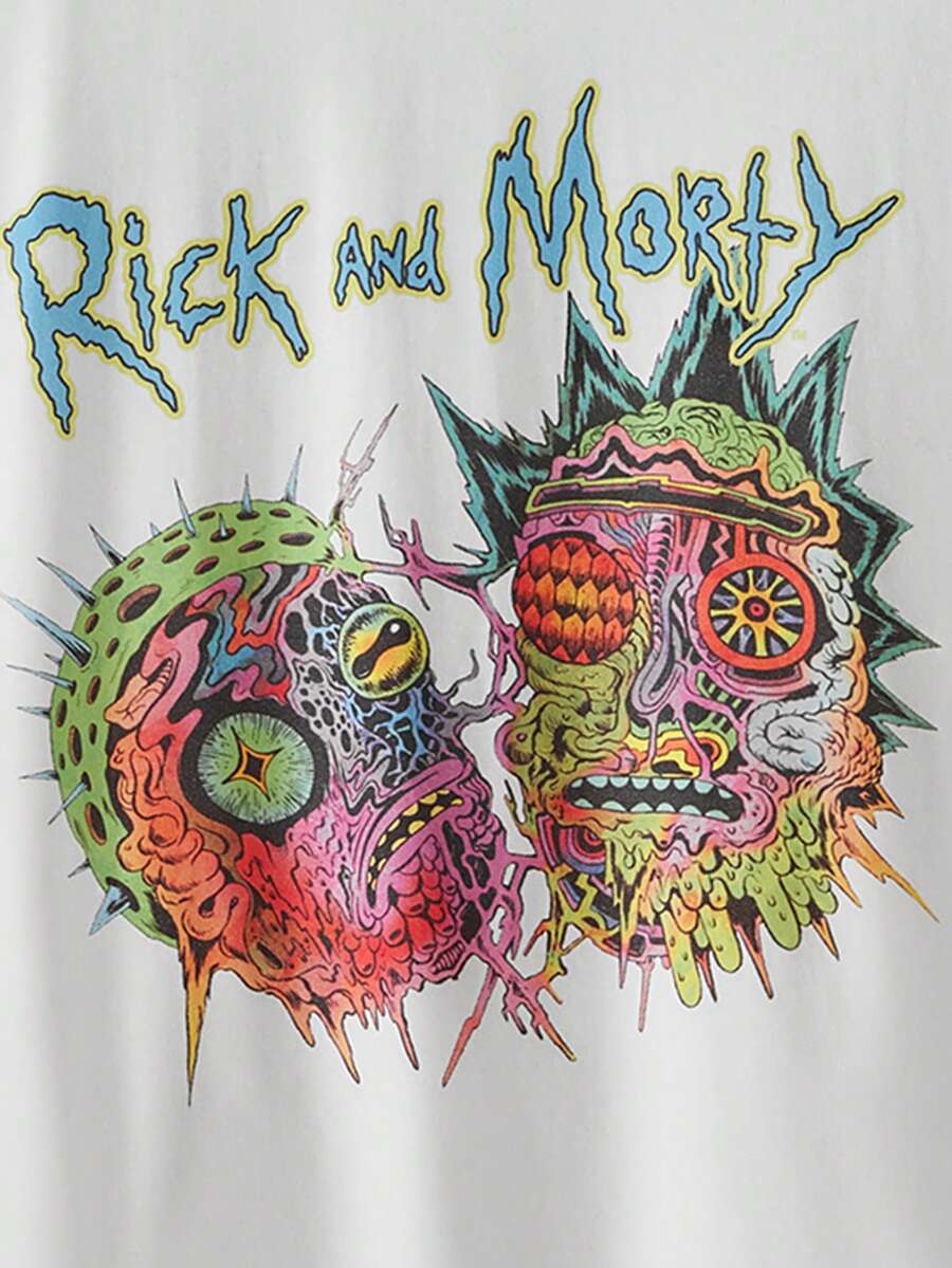 Rick and Morty | ROMWE Letter Graphic Drop Shoulder Tee