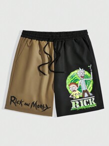 Rick and Morty | ROMWE Men Casual Cartoon Character And Letter Printed Two Tone Drawstring Waist Shorts For Summer