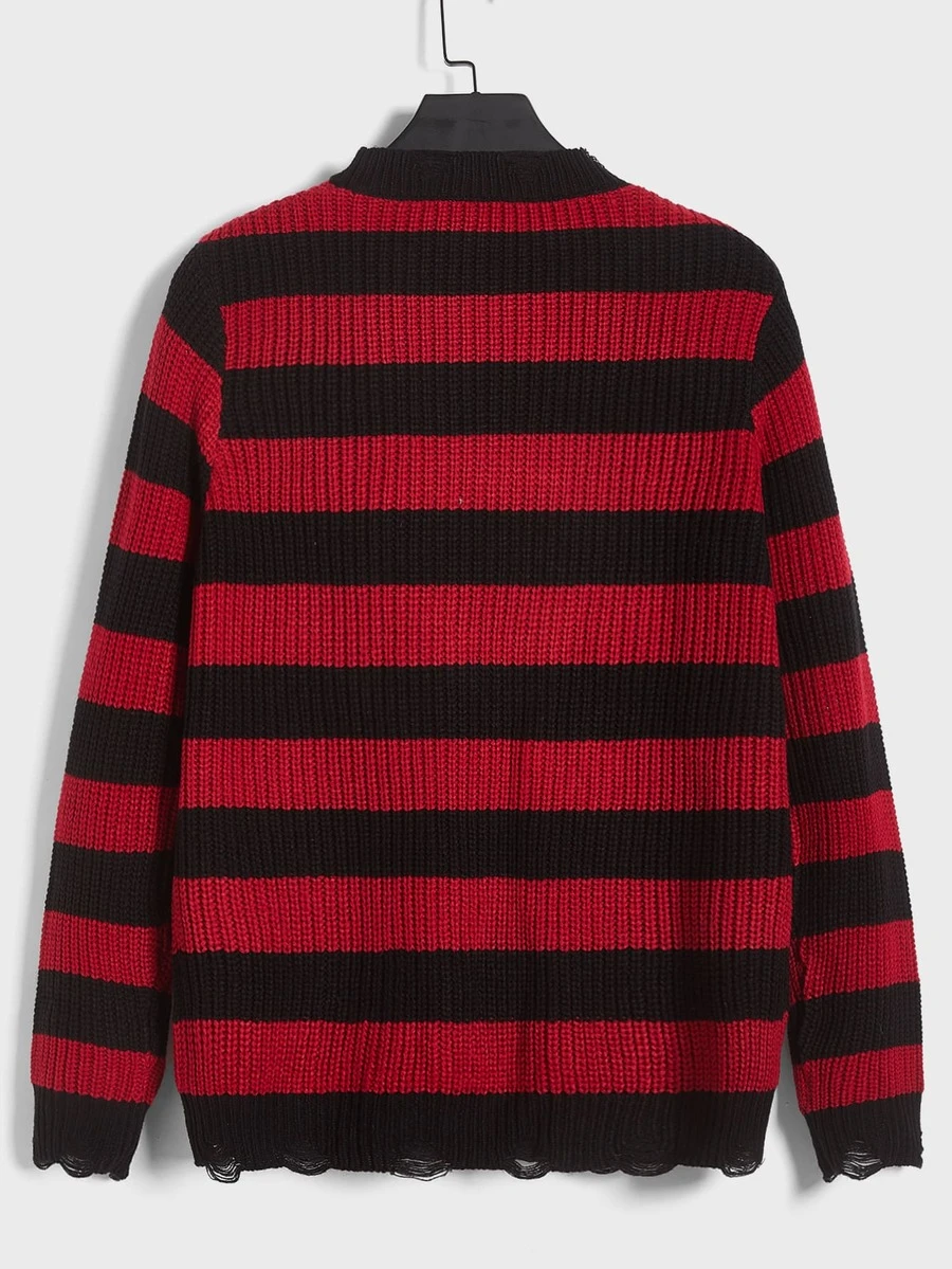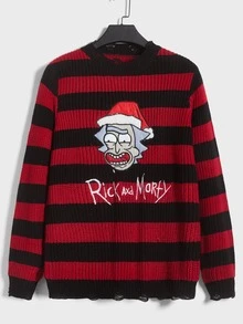 Rick and Morty | ROMWE Ugly Christmas Guys Letter Cartoon Embroidery Striped Sweater