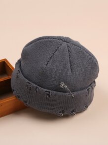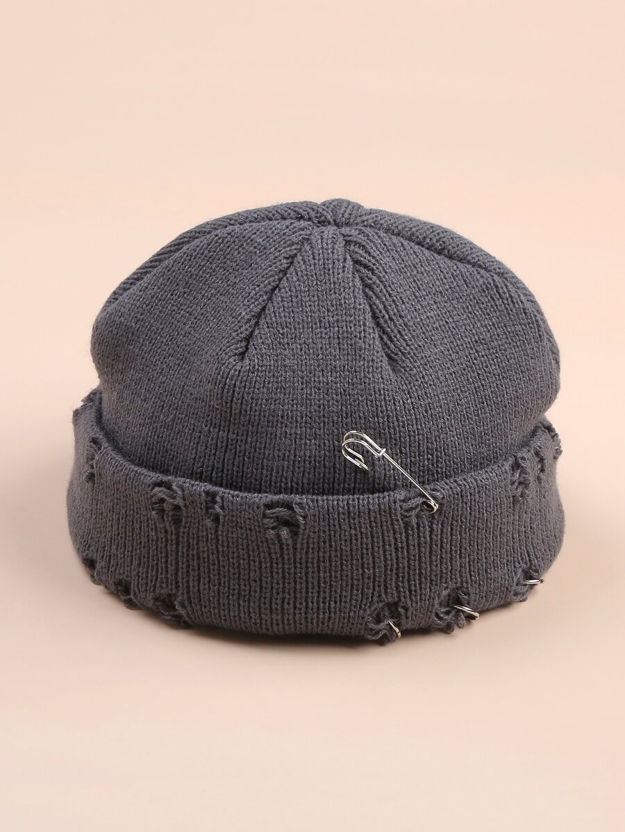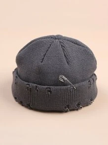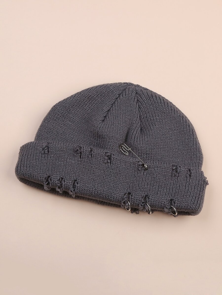Ring Decor Ripped Beanie
