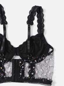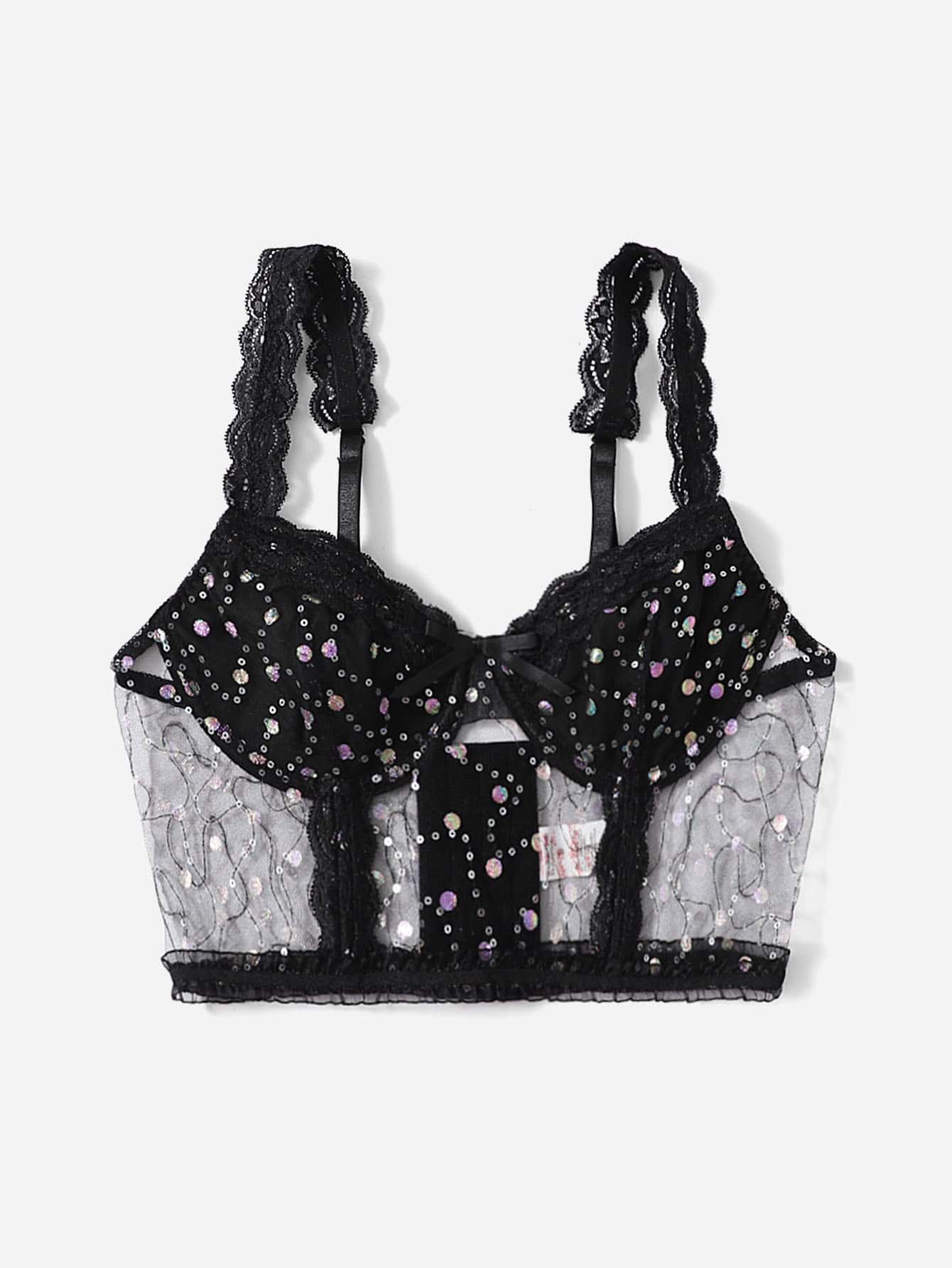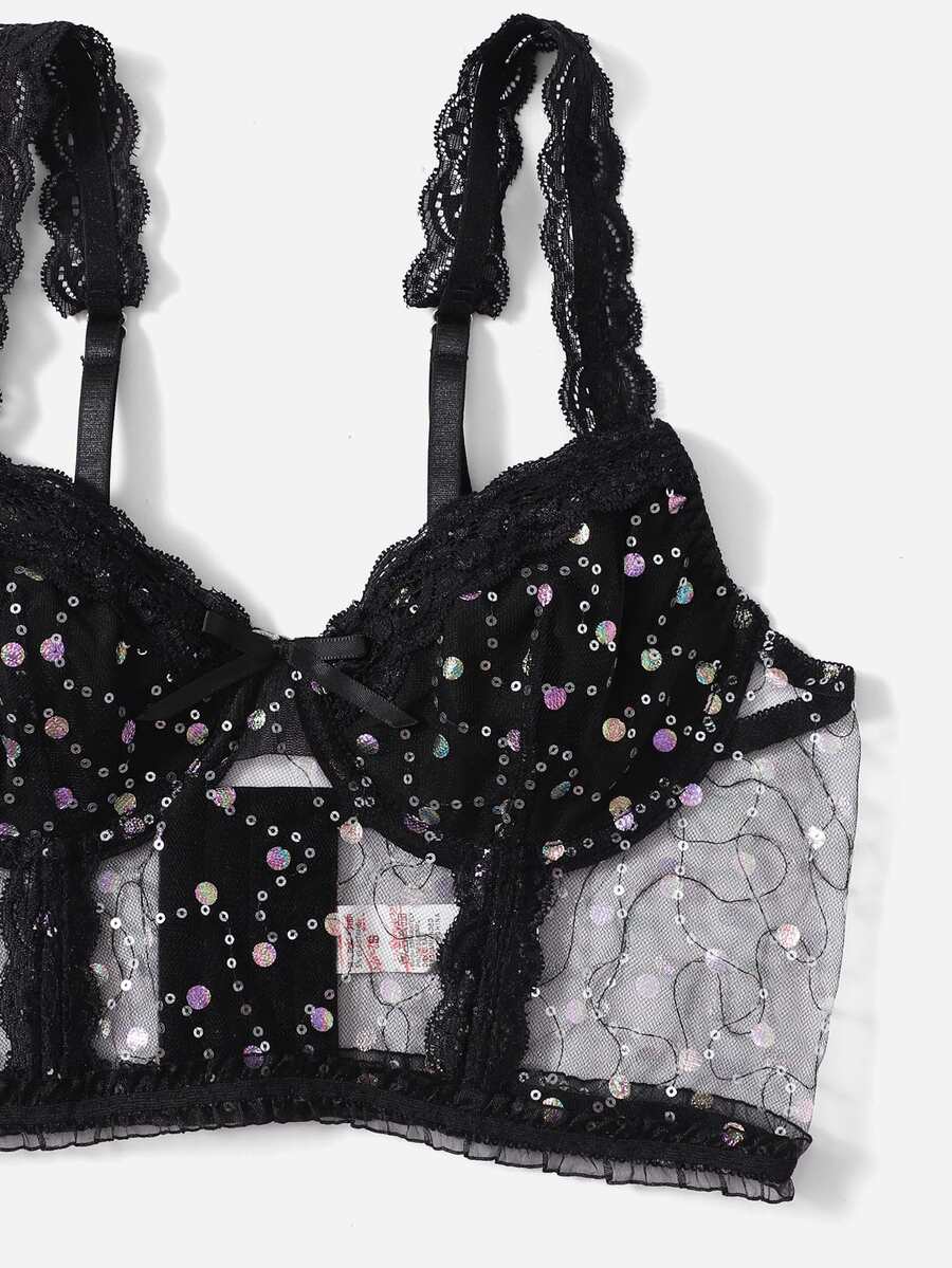 Romwe X Gabiciamp Contrast Sequin Lace Bralette