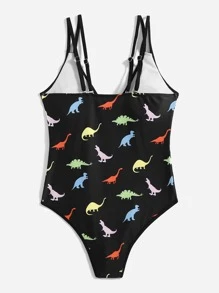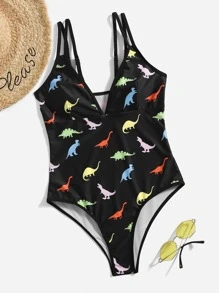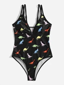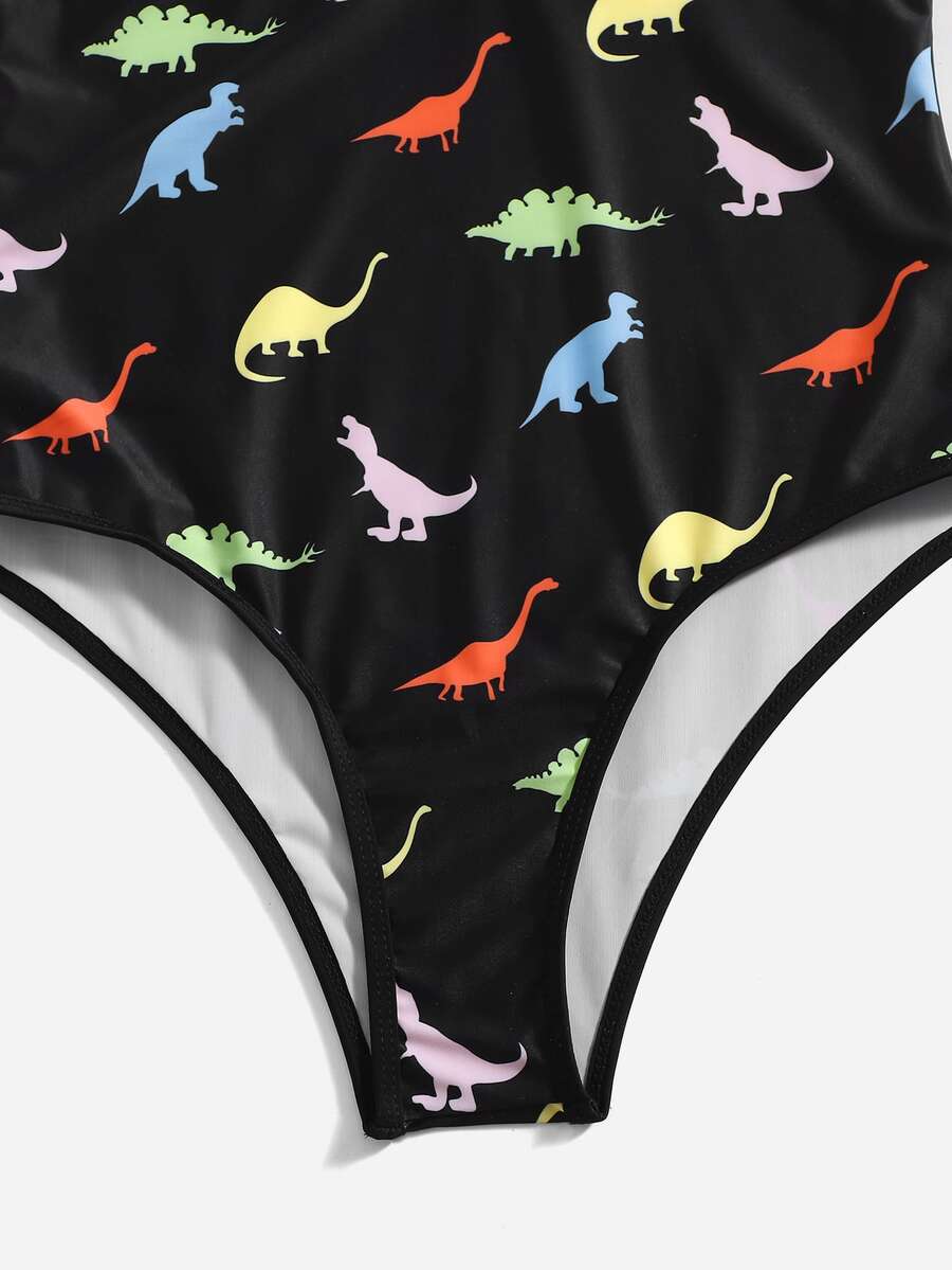 Romwe X Gabiciamp Dinosaur Print One Piece Swimsuit