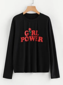 Rose And Letter Print T-shirt