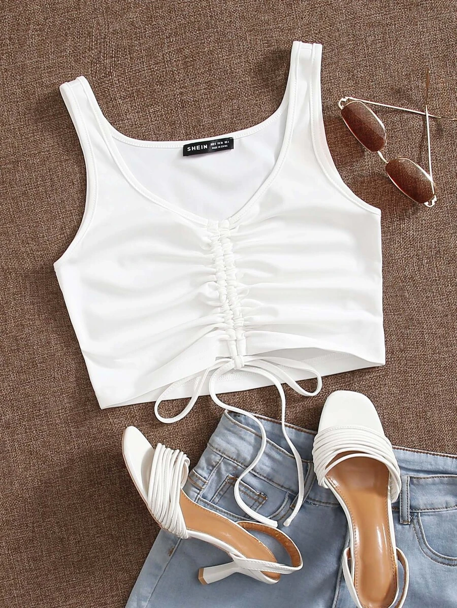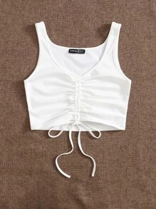Ruched Drawstring Knot Tank Crop Top
