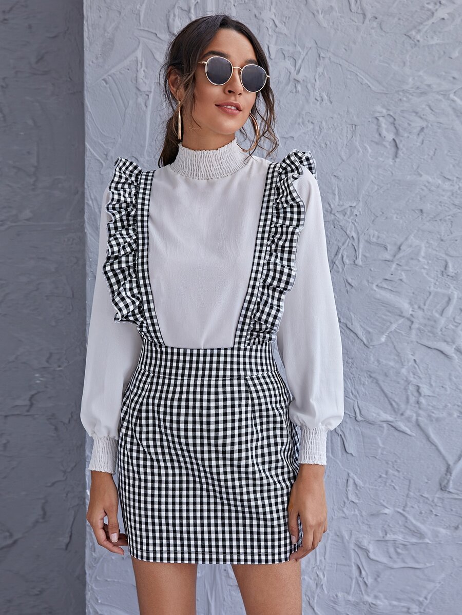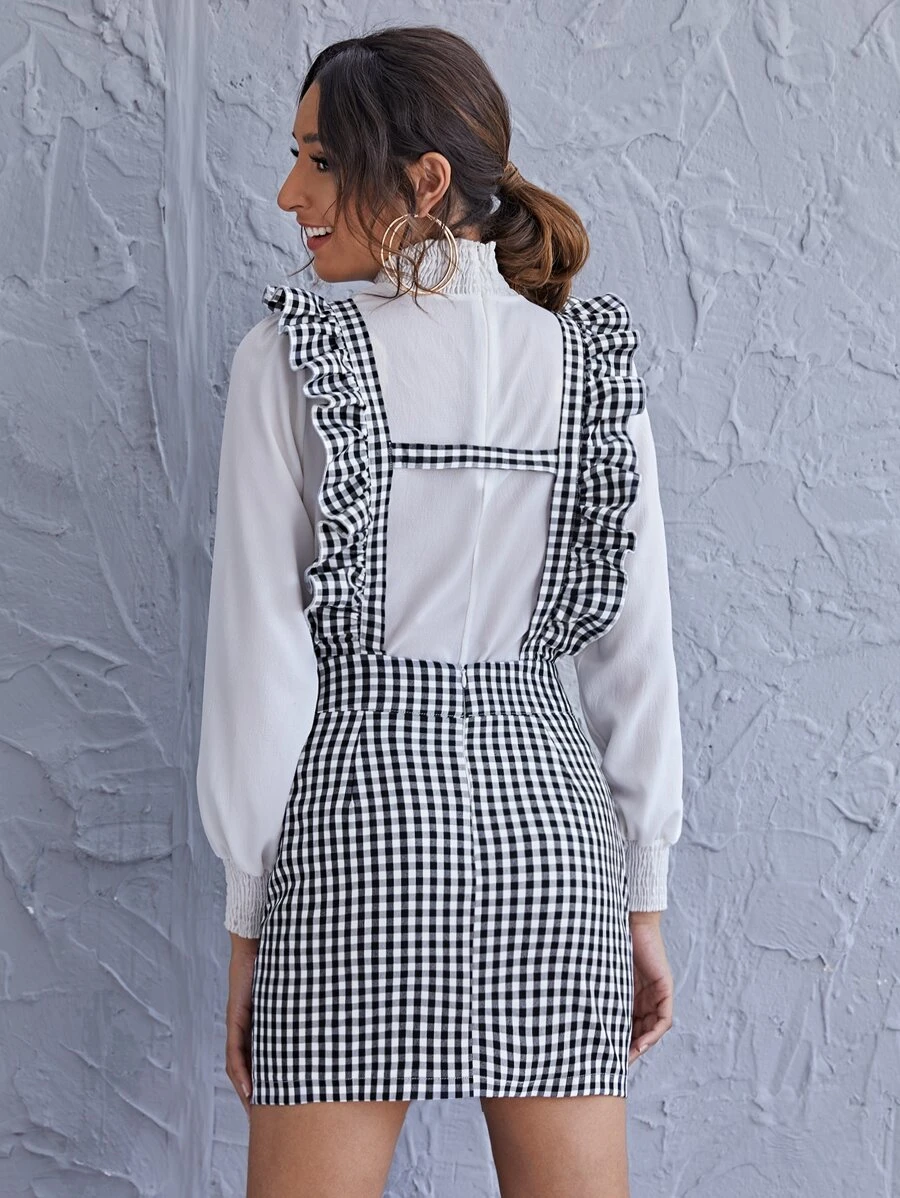 Ruffle Strap Gingham Suspender Dress