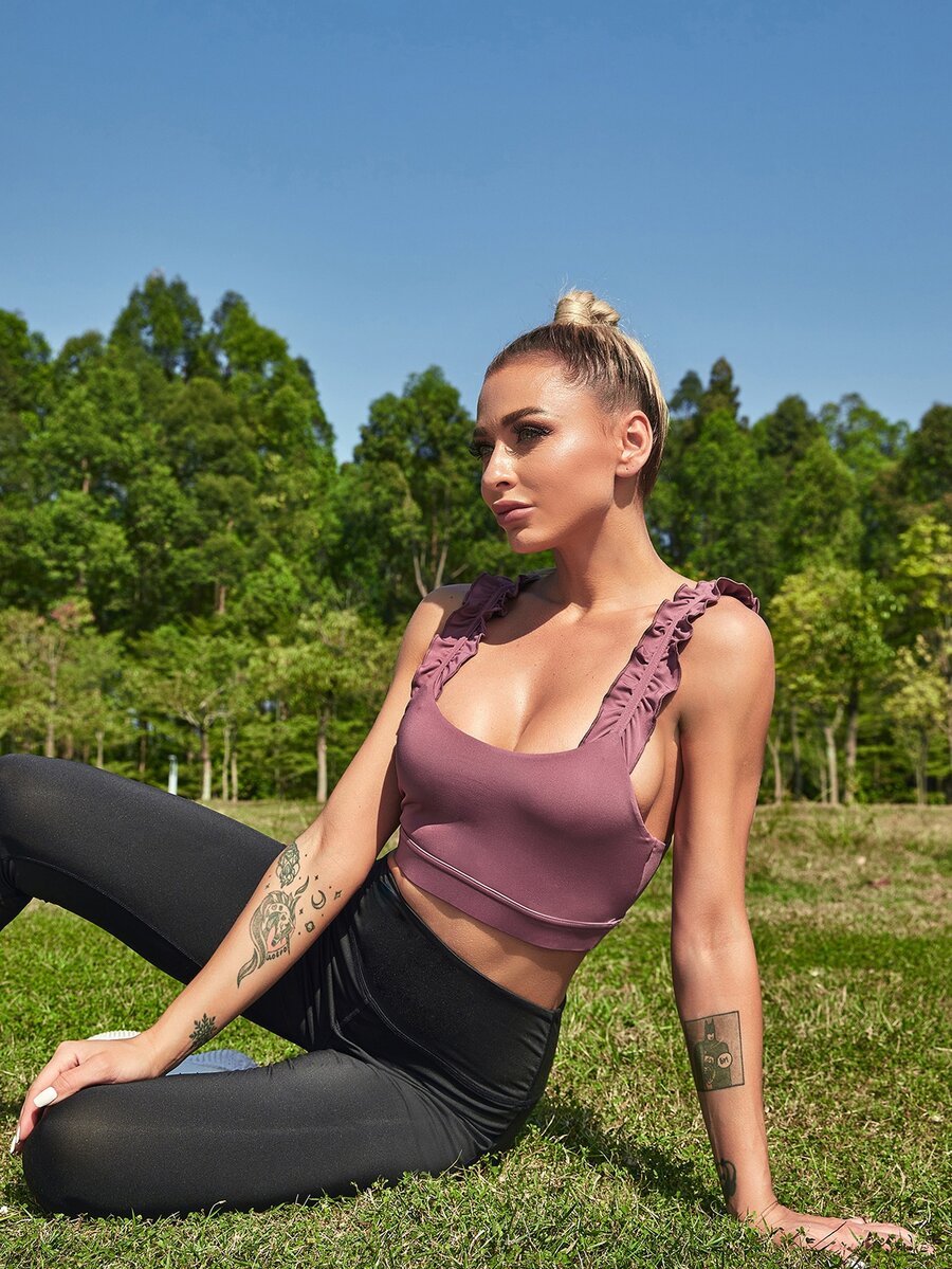 Ruffle Straps Scoop Neck Sports Bra