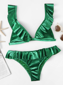 Ruffle Velvet Triangle Top With Panty Bikini