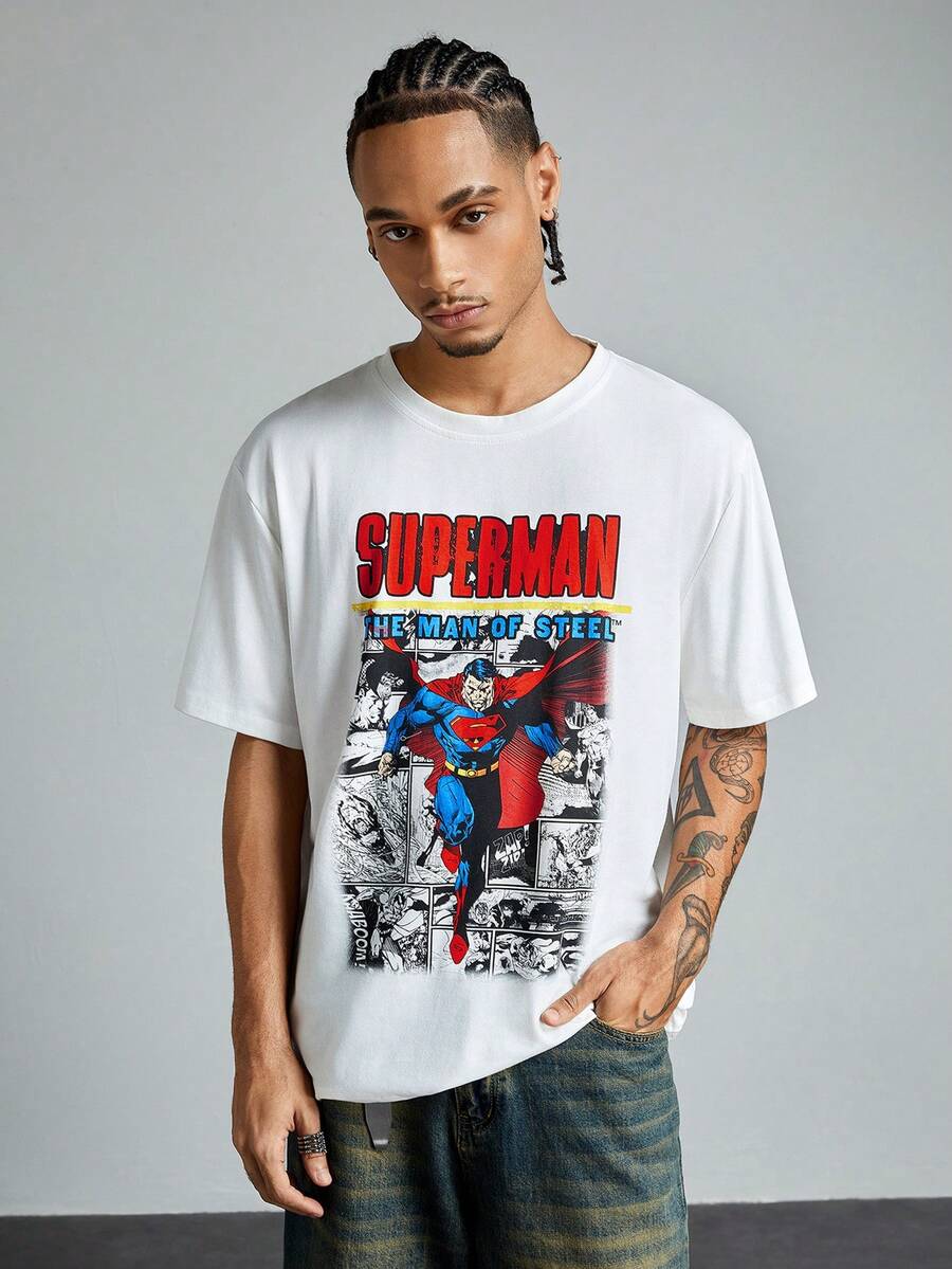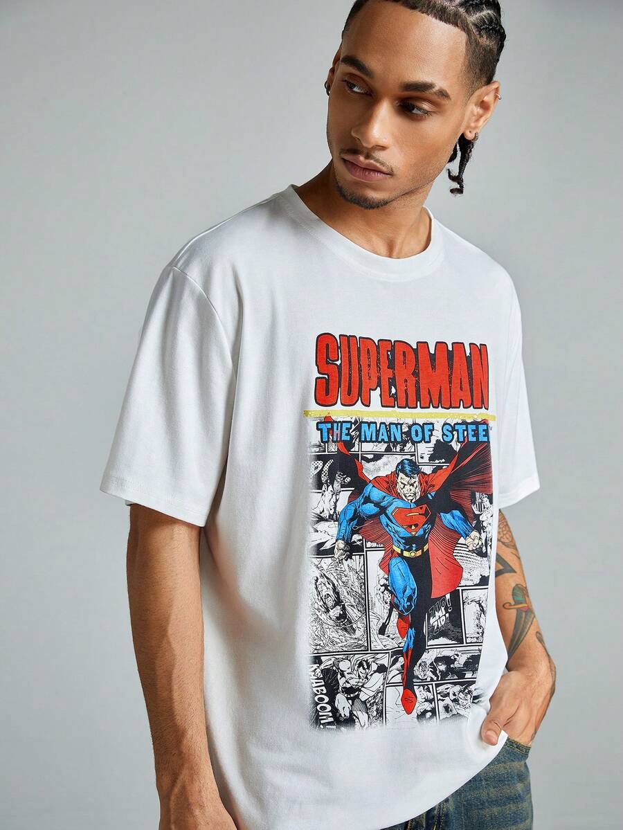SUPERMAN X ROMWE Men's Printed Short-Sleeved Round Neck T-Shirt Suitable For Daily Use In Spring And Summer