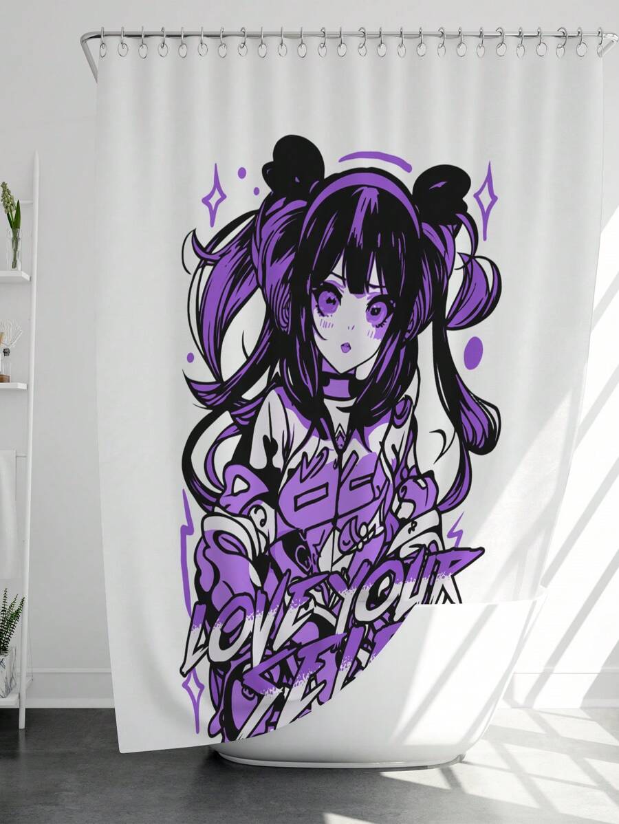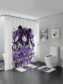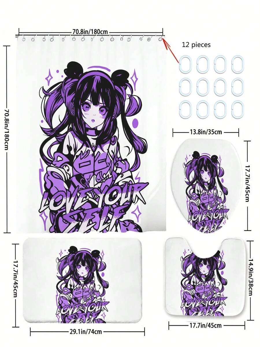 Sapstudio Creative Anime Woman Series Digitally Printed Polyester Waterproof Shower Curtain Bathroom Set With Non-Slip Mat, Shower Curtain, Toilet Seat And Toilet Seat - Perfect For Bathroom Decor And Essentials