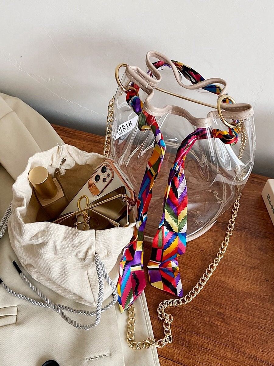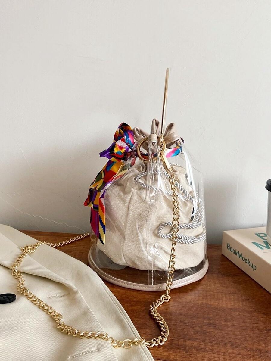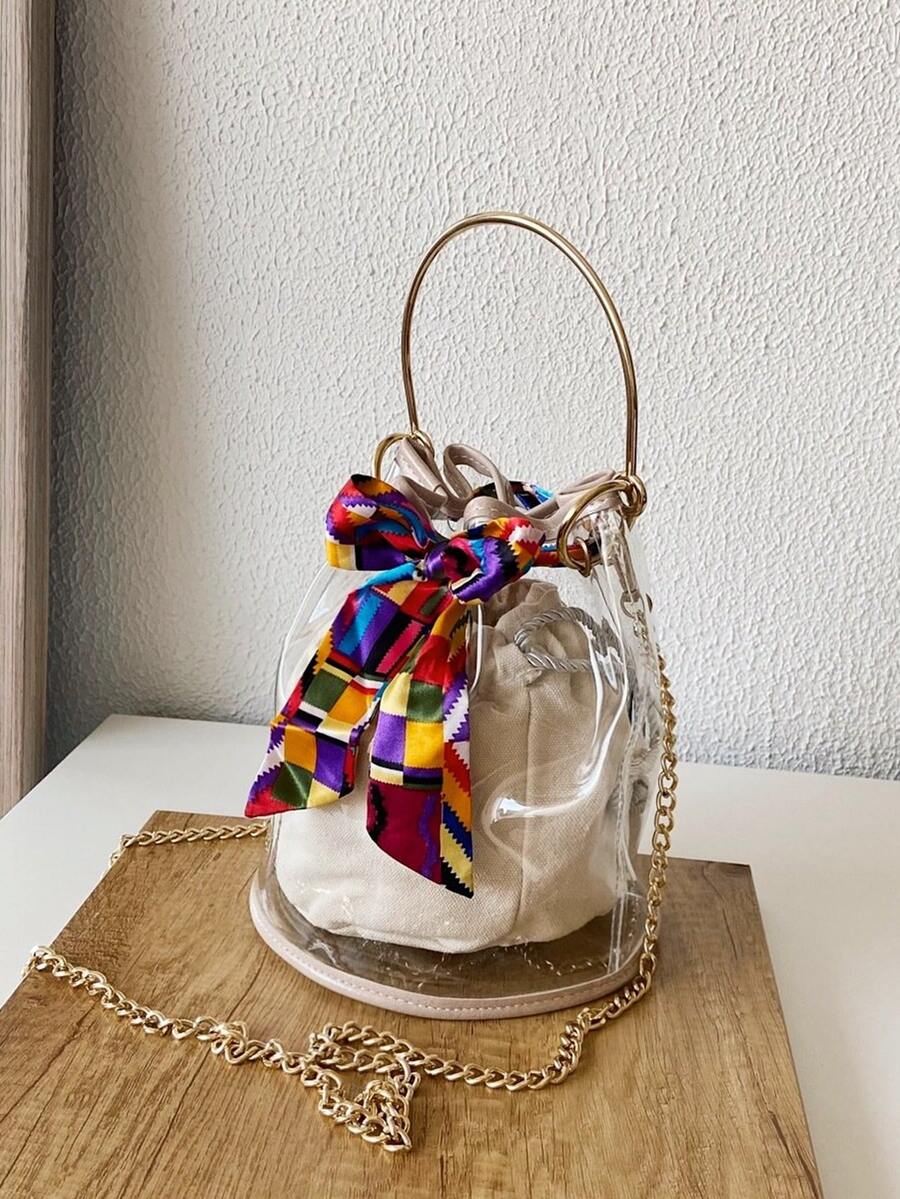 Scarf Knot Clear Bucket Bag