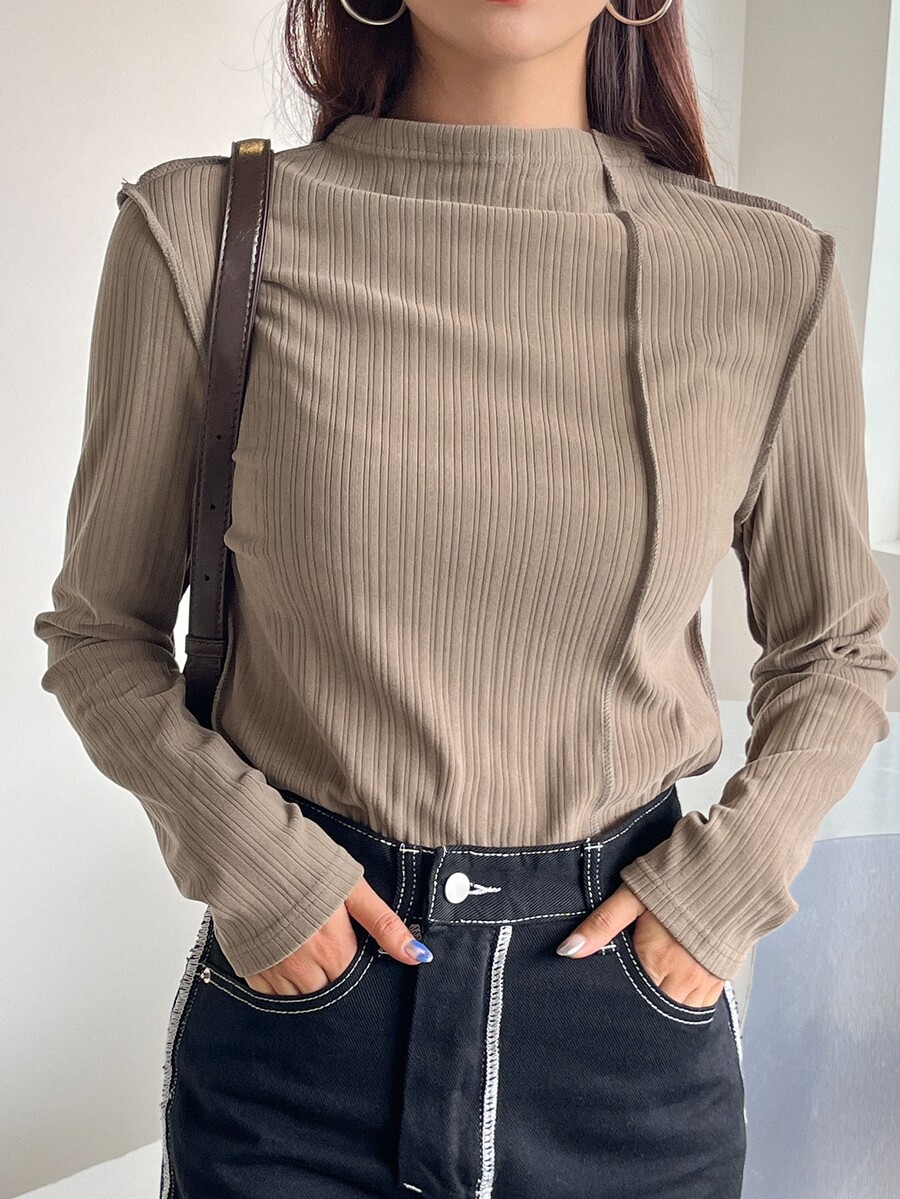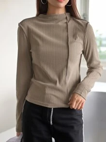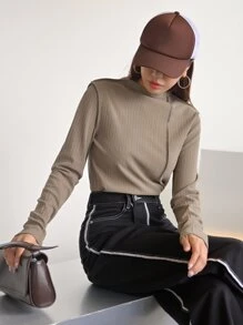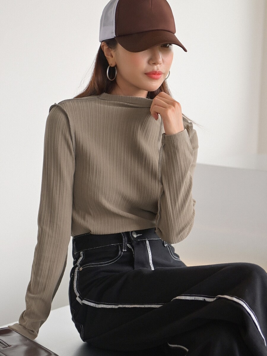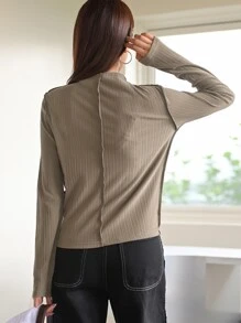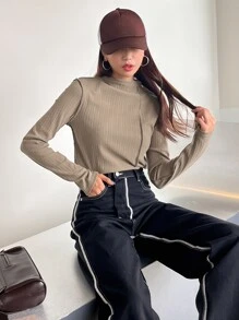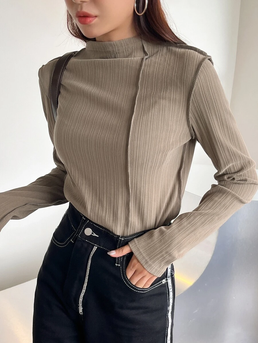 Seam Detail Mock Neck Tee Long Sleeve Women