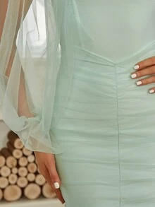 Sesidy One Shoulder Mesh Sleeve Bandage Dress