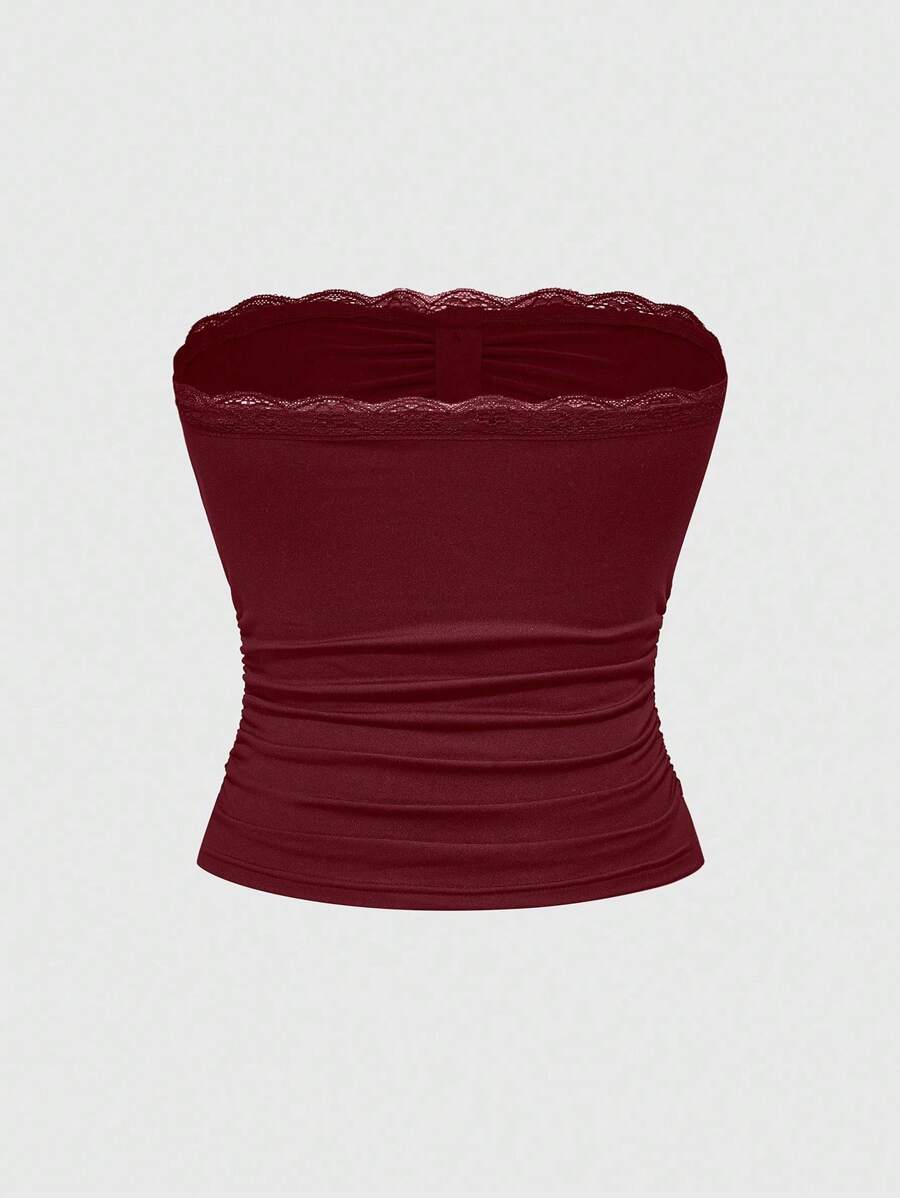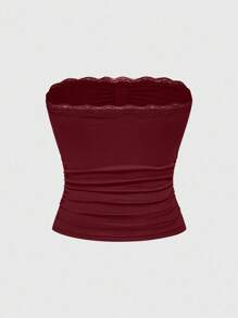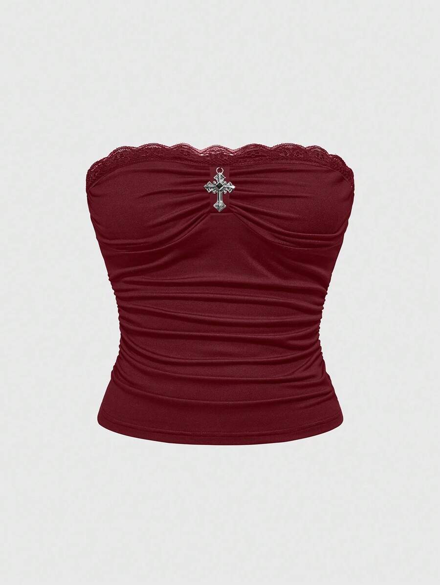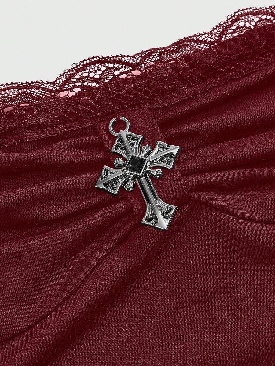 Goth Sexy Minimalist Lace Trim Metal Cross Decor Bandeau Top