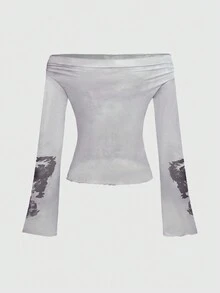 Fairycore Sexy Sheer Mesh Vintage Floral Rose & Bow Print Blouse For Women, Autumn/Winter