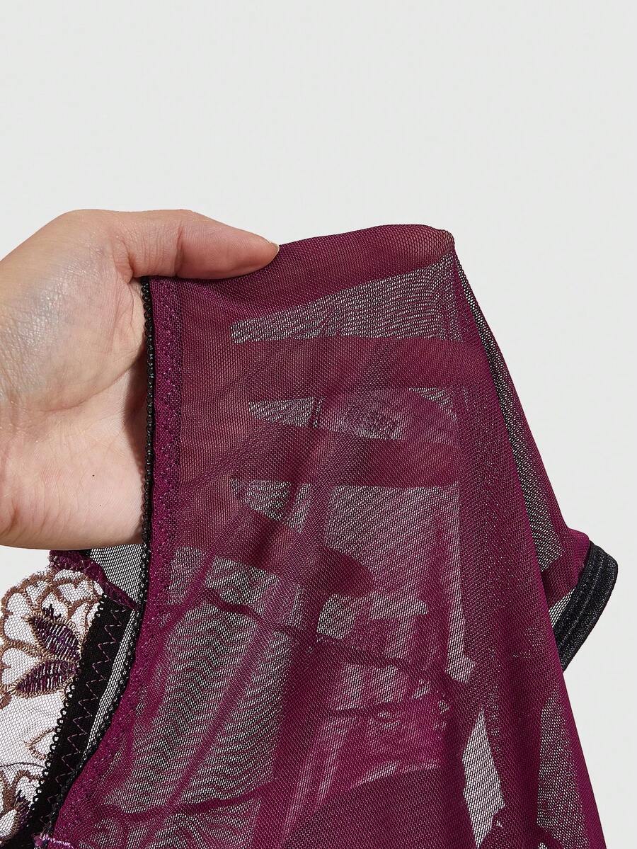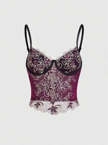 Goth Sexy Sheer Purple Lace & Mesh Floral Camisole Tank Top For Women